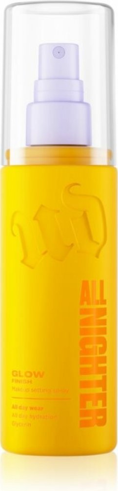 Urban Decay All Nighter Glow finish, 118 ml, Fixace make-upu pro ženy, Nejen o okamžité osvěžení a hydrataci pleti, ale i o zafixování líčení se postará pleťový sprej Urban Decay All Nighter Glow finish. Můžete ho aplikovat kdykoliv během dne, a to i přes make-up – pomůže prodloužit jeho výdrž a zároveň vám zajistí příjemný pocit svěžesti. Vlastnosti: dlouhodobá fixace make-upu rozjasňuje pleť produkt je voděodolný prodlužuje výdrž make-upu Složení: veganský produkt Jak používat: Před použitím důkladně protřepejte, nastříkejte přiměřené množství přípravku na tvář. Vyhněte se přímému kontaktu s očima. Opakujte podle potřeby kdykoli během dne. Nastříkejte na tvář z krátké vzdálenosti.