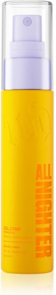 Urban Decay All Nighter Glow finish, 30 ml, Fixace make-upu pro ženy, Nejen o okamžité osvěžení a hydrataci pleti, ale i o zafixování líčení se postará pleťový sprej Urban Decay All Nighter Glow finish. Můžete ho aplikovat kdykoliv během dne, a to i přes make-up – pomůže prodloužit jeho výdrž a zároveň vám zajistí příjemný pocit svěžesti. Vlastnosti: dlouhodobá fixace make-upu rozjasňuje pleť prod...