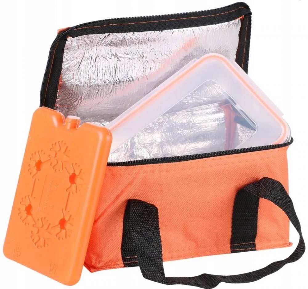 Chladicí taška s chladící vložkou a svačinovým boxem. Objem 3,5 l, rozměr 22 x 14 x 11,5v cm, barva oranžová.