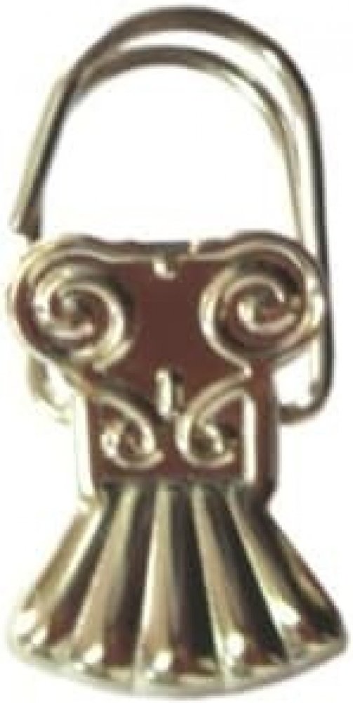 Kovová žabka v barvě bílé, béžové, bronzové, stříbrné a zlaté. Žabka je vhodná především na kroužky menších průměrů nebo na záclonové jezdce, háčky. Vhodný jezdci, háčky: