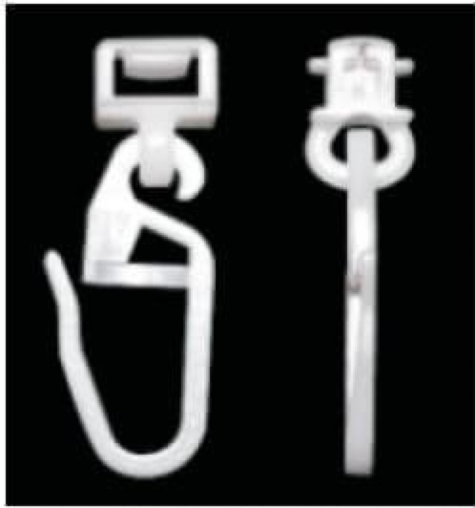 \nHáček je určen na záclonovou lemovku, lze uzamknout a prát se záclonou nebo závěsem. Doporučené množství je dle délky, na 10 cm = 1 ks. V případě dvoukolejnice nebo trojkolejnice nezapomeňte násobit počtem drážek.