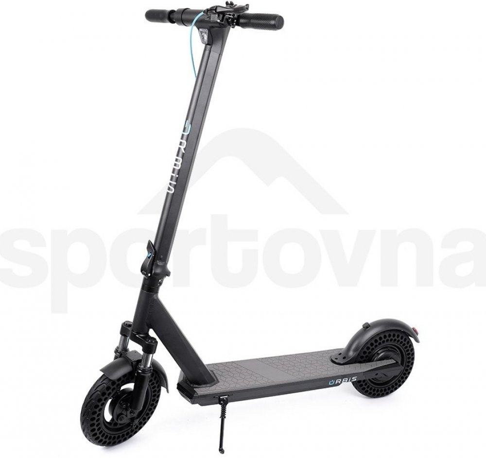 Velmi příjemné ovládání koloběžky je dáno vysokými řídítky a velmi pevnou, robustní konstrukcí. Plné bezdušové pneumatiky jsou 100% bezúdržbové a díky průměru 10“ jednoduše překonáte každou překážku. O pohodlí se stará odpružená přední vidlice. Přehledný displej poskytuje informace o rychlosti, stavu baterie a nastaveném rychlostním módu. Páčka brzdy aktivuje bubnovou brzdu v předním kole, jejíž brzdný účinek je snadno nastavitelný pomocí matice.