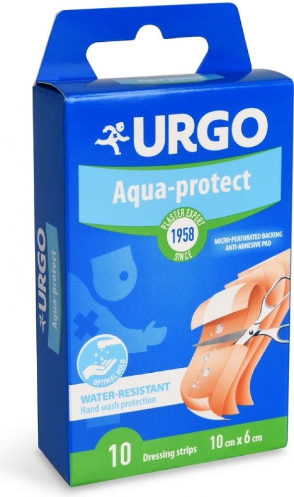 URGO Aquaprotect – Omyvatelná je určená ke každodenní ochraně povrchových ran. Je to také pro vzduch propustná náplast, která nechává pokožku i ránu volně dýchat a zároveň díky polštářku napuštěnému antiseptickým roztokem zajišťuje antimikrobiální ochranu drobných ran. Speciálně upravený polštářek se nelepí na ránu.