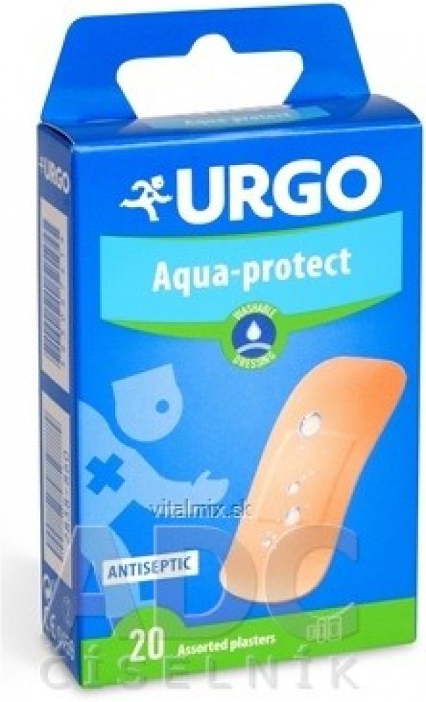 URGO Aqua-protect je voděodolná, omyvatelná náplast k ošetření běžných poranění. Vodě odolná, umývateľnánáplasťna ošetření běžných poranění, jako jsou drobné řezné rány a odřeniny. V balení se nachází 20 kusů náplastí ve 3 velikostech: 6ks 20x40mm; 10ks 19x72mm; 4ks 34x72mm. chrání při kontaktu s vodou, pružná náplast, přizpůsobí se pohybu, je vhodná pro použití i na malé klouby, například na prsty, určená pro citlivou pokožku, jehypoalergénna, prodyšná, umožňuje dýchání pokožky, náplast se nepřilepí k ráně, protože polštářek je chráněn nepřilnavým filmem, polštářek je impregnovaný antiseptickým roztokem, který působí jako antimikrobiální ochrana ran, podporuje přirozený proces léčby, po odstranění náplast nezanechává stopy na pokožce, náplast je určena k ošetření poranění, jehož rozsah není větší než velikost polštářku náplasti. Vice na adcc.sk