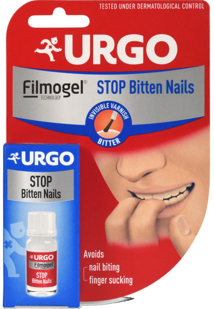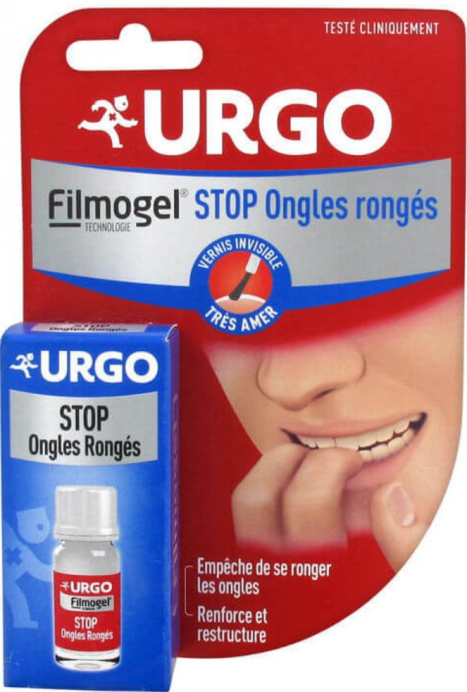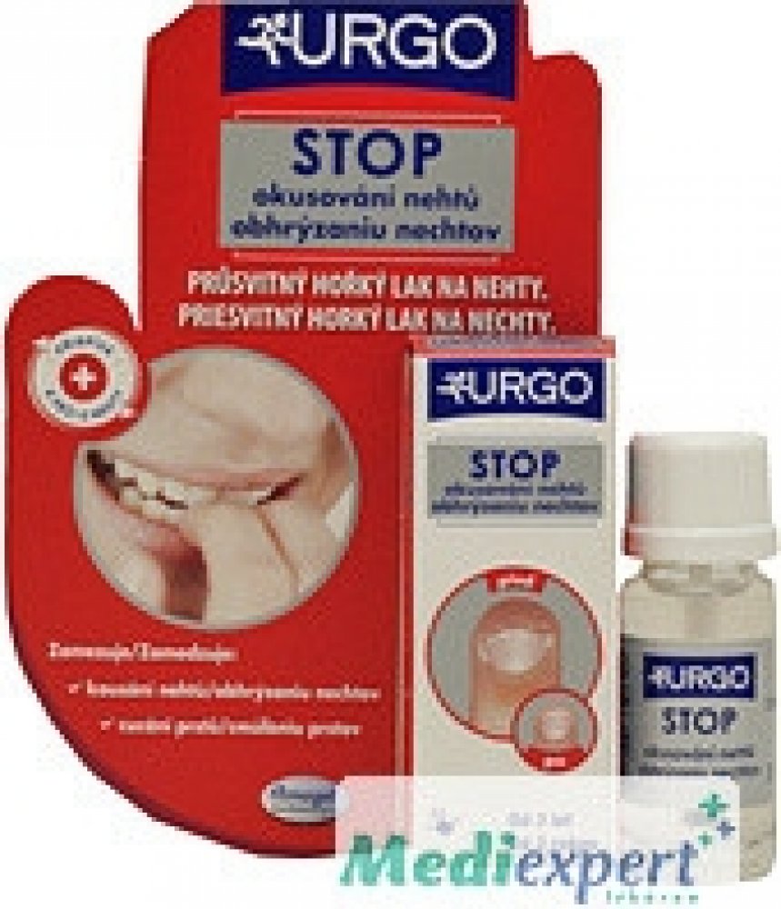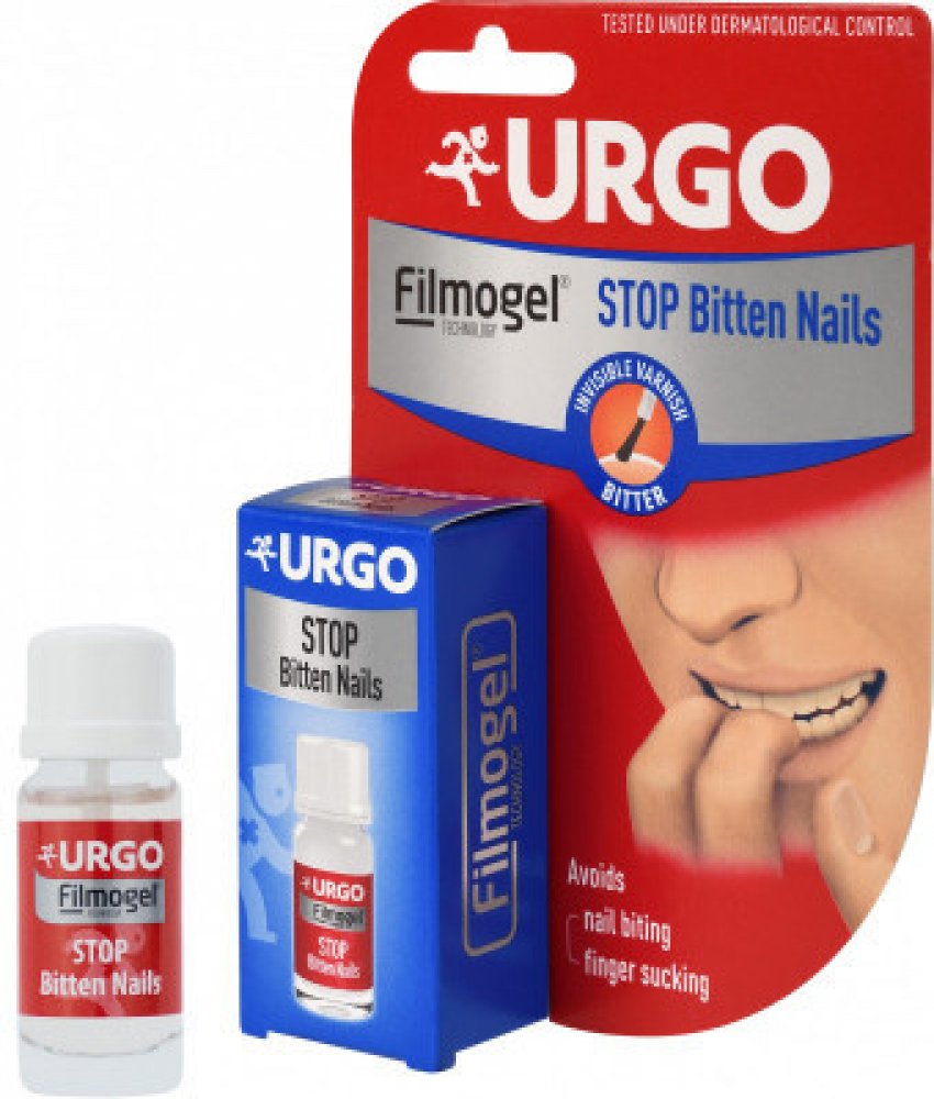 Zamezuje kousání nehtů a cucání prstů. URGO Stop okusování nehtů zamezuje kousání nehtů a cucání prstů. Hořký, průsvitný a nezávadný lak na nehty, který díky své hořké chuti odrazuje od kousání nehtů a cucání prstů, přispívá k péči o nehty.