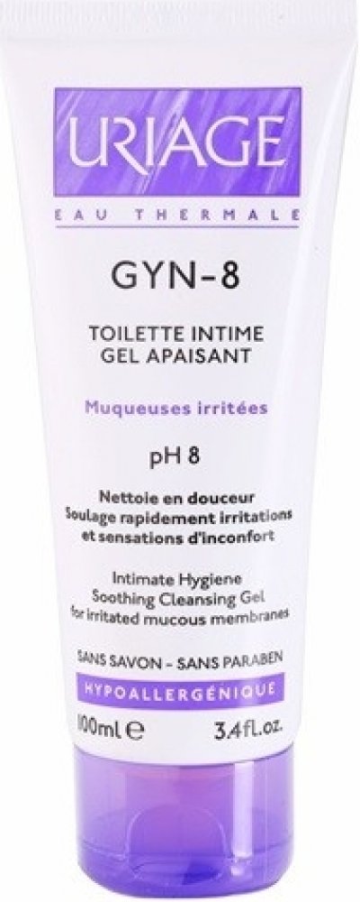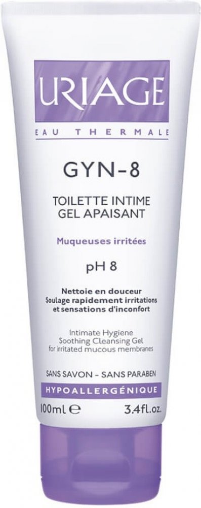 - hojivý gel na intimní hygienu Uriage GYN-8 Intimate Hygiene Soothing Cleansing Gel odstraňuje pocit dyskomfortu a obnovuje rovnováhu kožní mikroflóry v intimních partiích