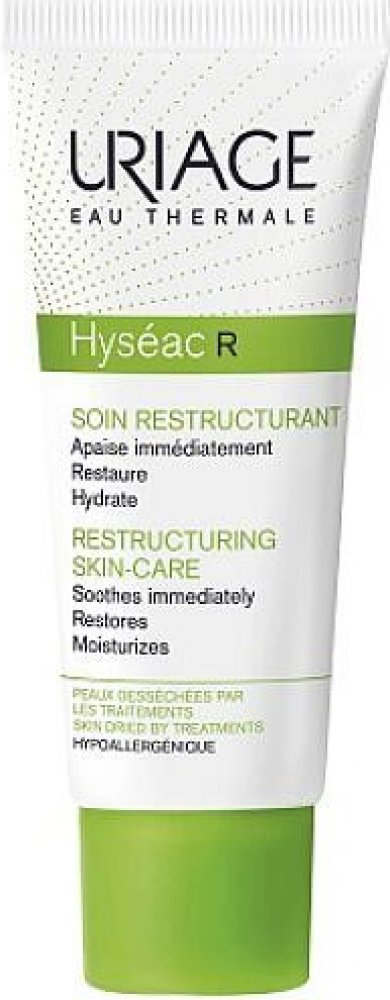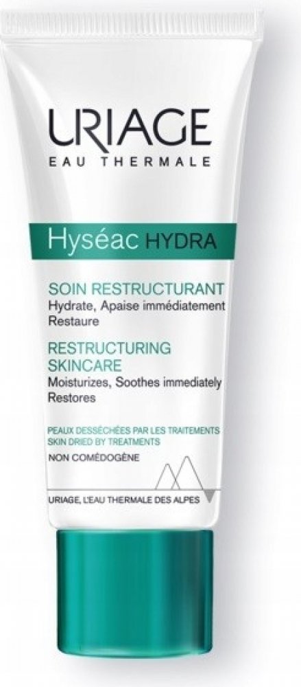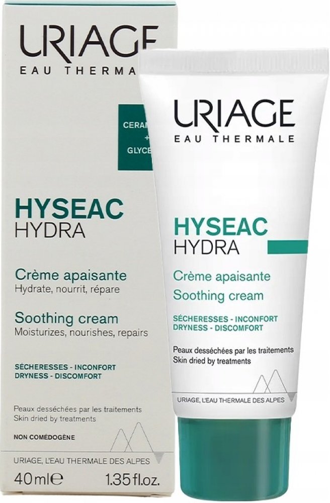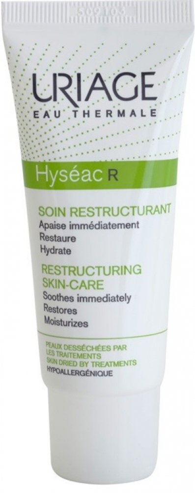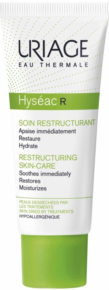 Regenerační a hydratační krém Hyséac R od značky Uriage je určený pro péči o pleť, která je vysušena léčbou akné. Jeho neolejová substance se snadno vstřebává do kůže, má zklidňující účinky a dodává pleti dostatečnou hydrataci. Je nekomedogenní - neucpává póry a obnovuje přirozenou ochranu pleti.