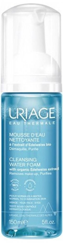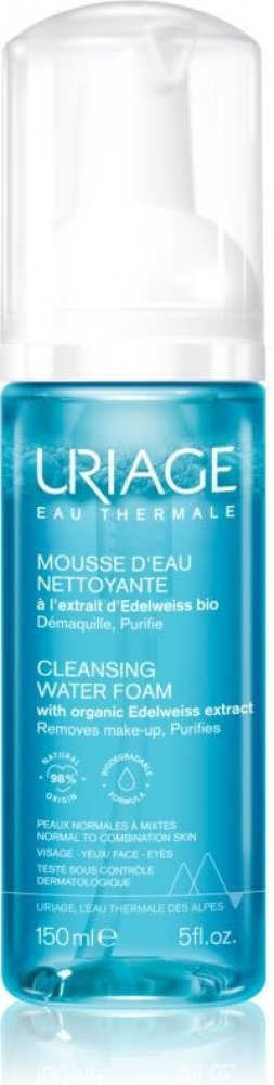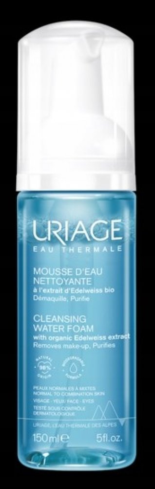 Uriage Cleansing Water Foam. Ve vaší výbavě by neměla scházet čisticí pěna Uriage Cleansing Water Foam, která spolu s vyčištěním dodává pleti také svěží vzhled. Dopřejte si každodenní kosmetický zážitek, během něhož se průzračná micelární voda na vaší pleti promění v nadýchanou hebkou pěnu s bezvadným odličovacím a čisticím účinkem. Textura bez obsahu mýdla respektuje přirozenou rovnováhu pokožky.