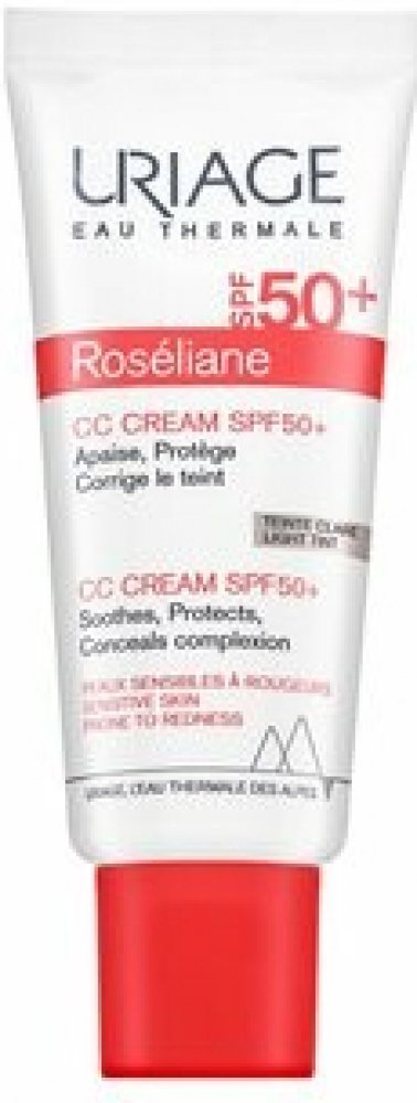 Uriage Roséliane CC Cream SPF 50+, 40 ml, Tónovací krémy pro ženy, Tónovací krém Uriage Roséliane CC Cream SPF 50+ dodá vaší pleti potřebnou dávku hydratace a zároveň zakryje její případné nedokonalosti. Vlastnosti: rozjasňující efekt sjednocuje barevný tón poskytuje ochranu před slunečním zářením Jak používat: Naneste každé ráno na čistou pleť obličeje a důkladně rozetřete.