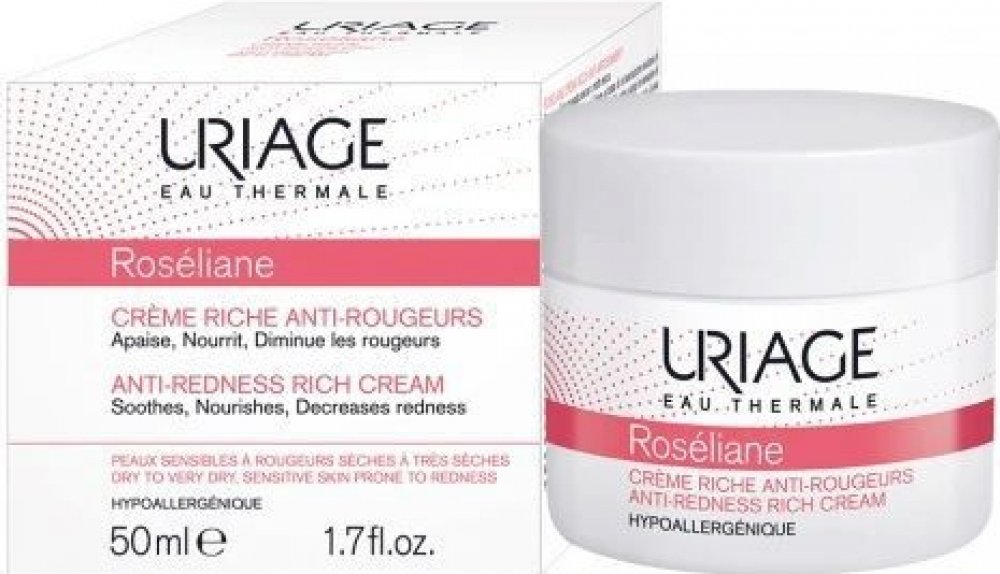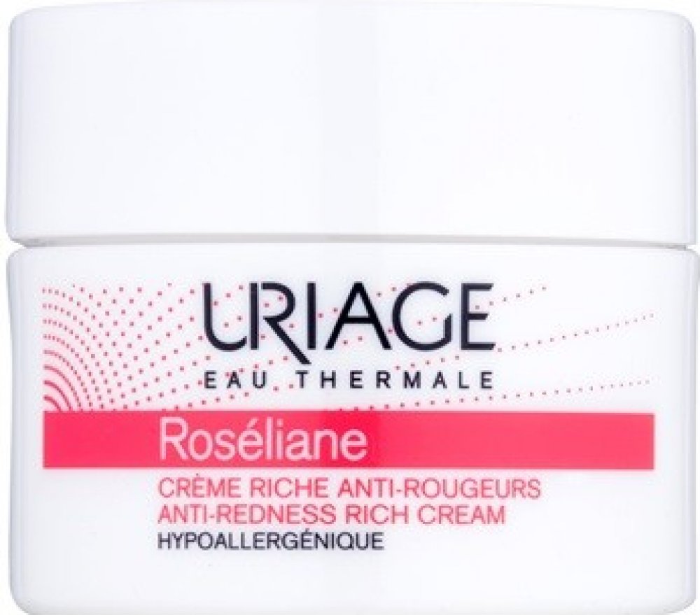 VÝŽIVNÝ KRÉM ROSÉLIANE přináší komplexní a jedinečné řešení v péči o citlivou pleť se sklonem k zčervenání. Díky unikátnímu spojení patentovaných komplexů aktivních látek a Termální vody Uriage obnovuje a posiluje hydrataci kožní bariéry a poskytuje tím ochranu pleti před agresivními vlivy vnějšího prostředí. VÝŽIVNÝ KRÉM ROSÉLIANE zklidňuje pocit přehřívání a pnutí pleti, viditelně redukuje její zčervenání a působí preventivně proti jeho prohloubení. Ihned po aplikaci dodává citlivé suché pleti komfort a intenzivní celodenní hydrataci. Krém je výborný i jako podklad pro make-up. Obsahuje zelenou perleť, která opticky kryje zčervenání pleti. Obnova a posílení kožní bariéry Roséliane krém s vysoce hydratačním účinkem poskytuje díky obsahu Termální vody Uriage pleti okamžitý a dlouhotrvající pocit pohodlí.Patent Cerasterol-2F, napomáhá trvalé obnově kožní bariéry.
