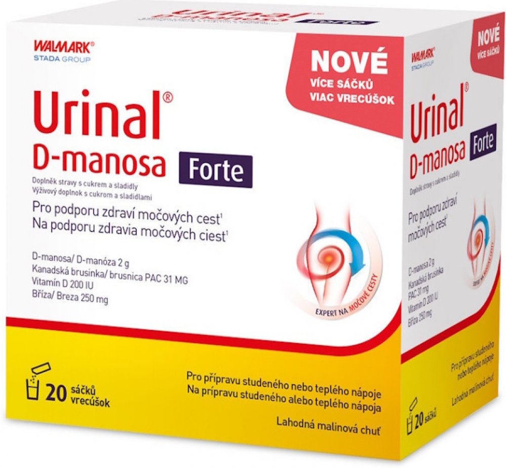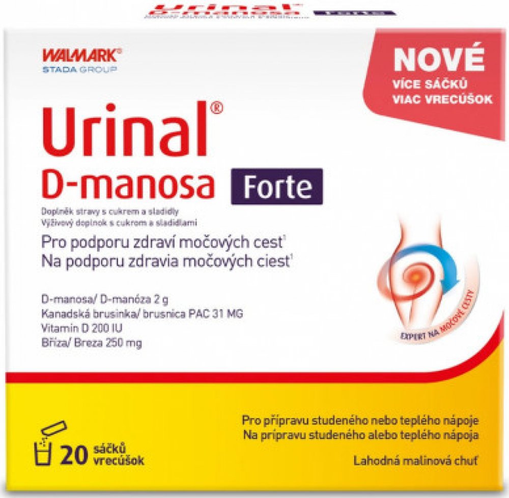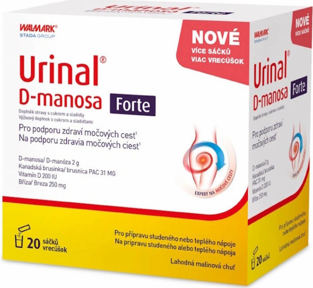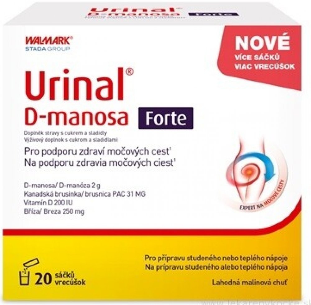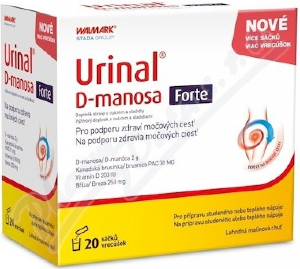 Walmark 20 tbl sáčky močové orgány 90.0 g urinal pro dospělé perorální od 12 let Malinová D-manóza pohlavní a močové orgány 20 2000.0 mg 200.0 IU Večer 1–2× za den Suché místo + pokojová teplota, Chránit před světlem/sluncem, Mimo do… s brusinkami