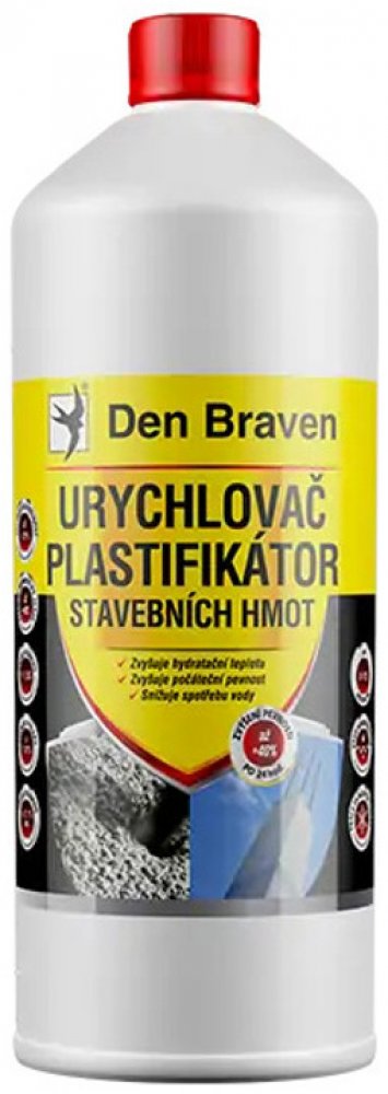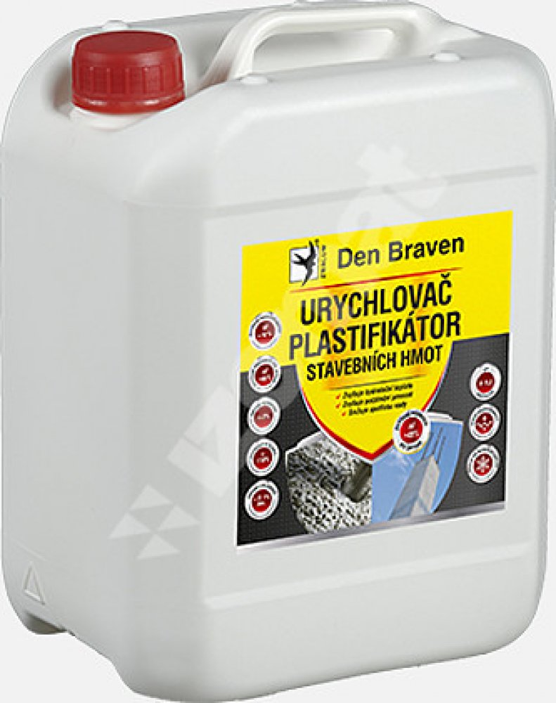 Urychlovač a plastifikátor stavebních hmot 5l nažloutlý. Pro snížení spotřeby vody, dodává plasticitu, zlepšuje zpracovatelnost, urychluje tuhnutí a vytvrzení betonů a hmot pojených cementem. Snižuje výskyt smršťovacích trhlin. Zásadním způsobem zvyšuje hydroizolační vlastnosti betonu, jejich pevnost a voděnepropustnost. Umožňuje zdění a betonování za poklesů teploty pod 0°C. Při betonování nebo zdění za nízkých teplot (pod +5°C) nutno postupovat dle zásad betonáže při nízkých a záporných teplotách. Odpovídá EN 934-2, T1/T12.
