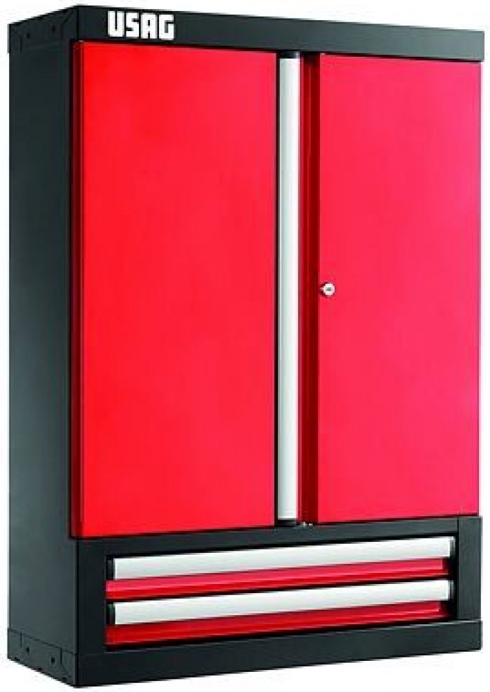 Profesionální skříň na nářadí USAG. kvalitní ocelová skříň se dvěma zásuvkami vnitřní perforované panely otevírání dvířek v rozsahu 180° integrovaný zajišťovací systém proti samovolnému otevření zásuvky zásuvky s elaxovaným hliníkovým držadlem centrální bezpečnostní zamykání skříně může být zavěšena na stěnu rozměr zavřené skříně 720 x 280 x 1 000 mm vnitřní rozměr zásuvky 569 x 2110 x 60 mm červe...