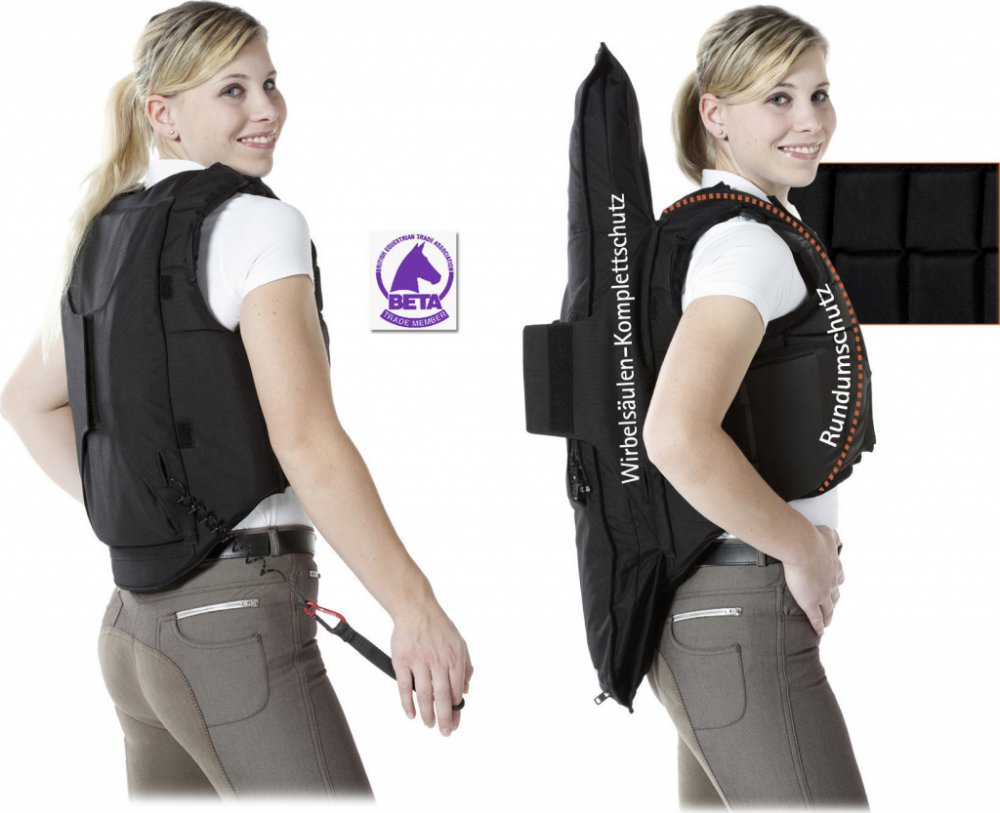 PRAKTIČNOST, JEDNODUCHOST A BEZPEČNOST. Tak lze popsat airbagový chránič EquiAirbag®, který je přídavným modulem, jež pasuje k bezpečnostním vestám Flexi od výrobce USG. Snadno se natáhně přes zadní stranu bezpečnostní vesty (viz video). Při své aktivaci je certifikován podle EN 1621-4. Účinně chrání celou páteř od zátylku po kostrč a také chrání hlavu před prudkými pohyby dopředu a dozadu. Chráni...
