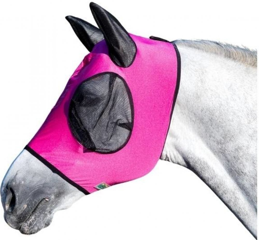 Maska se snadno přetahuje přes hlavu koně a nabízí optimální přizpůsobení.