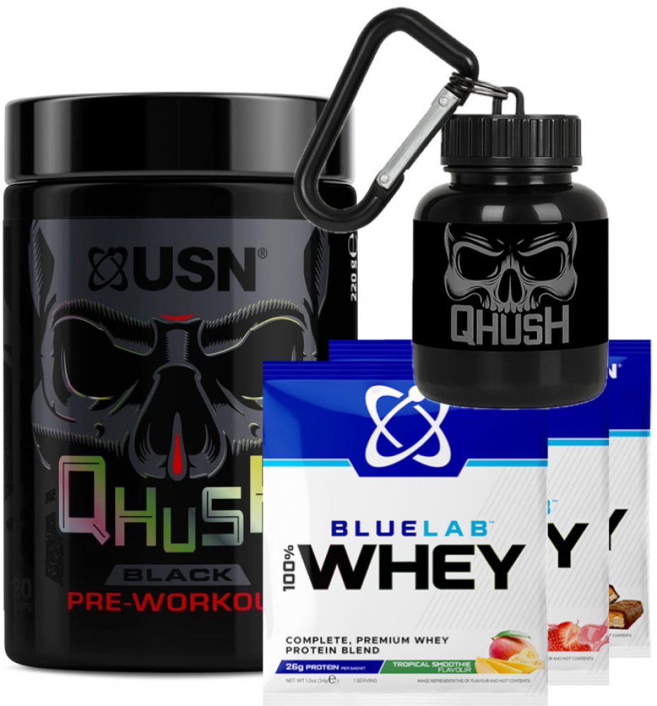 Qhush Black - Zvedněte svůj tréninkový výkon pomocí špičkového předtréninkového nápoje navrženého tak, aby Vaši energii a soustředění dostal na další úroveň.