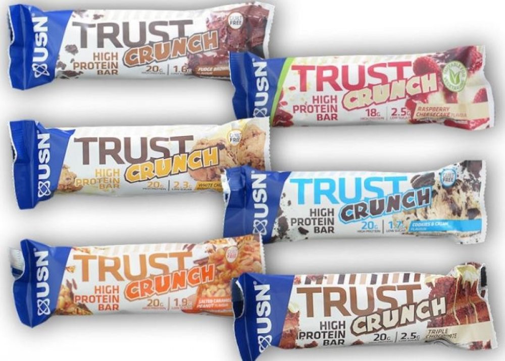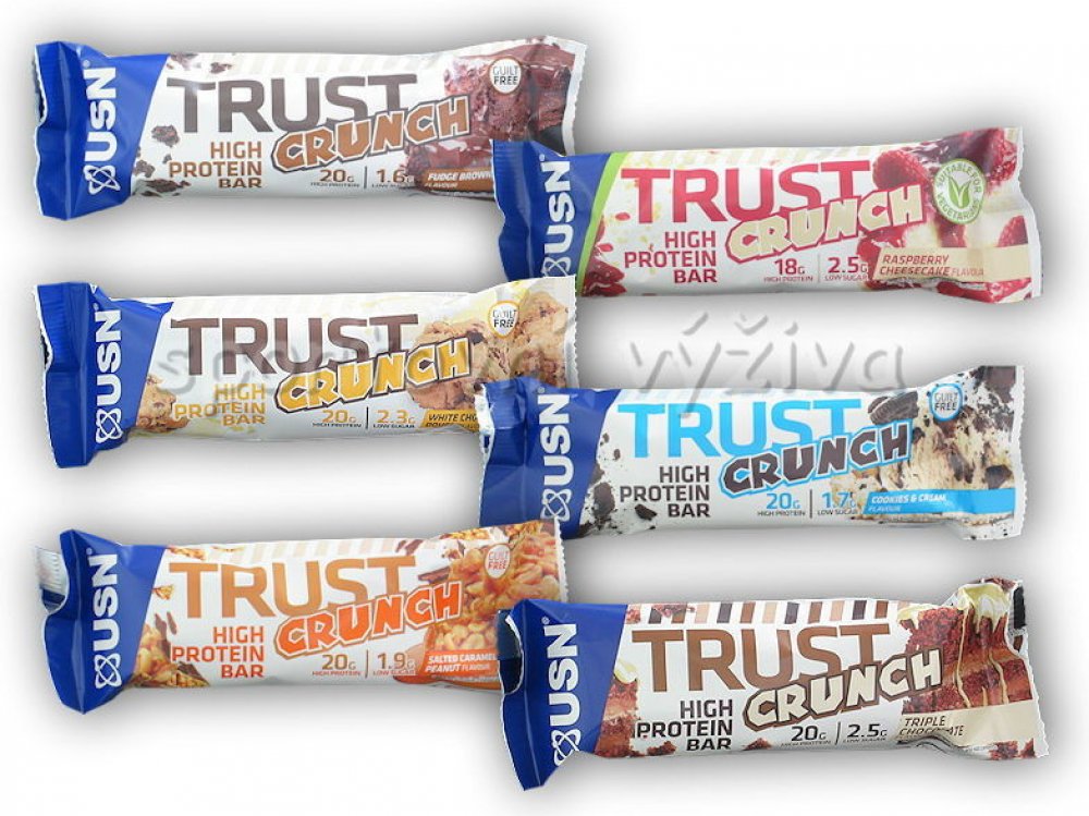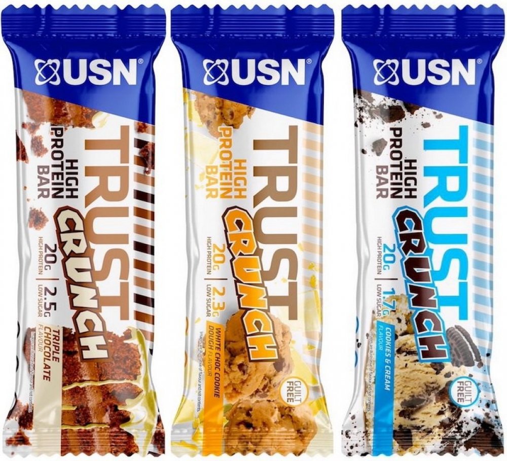 Trust Crunch Bar je proteinová tyčinka, která kombinuje skvělou chuť a zdravé složení. Z jedné výživné tyčinky získáte 20 g bílkovin a jen 2 g cukru. Trust Crunch Bar dodá tělu potřebné bílkoviny pro Vaše tělo a svaly. Vhodná kdykoliv během dne jako chutná svačinka v mnoha příchutích.