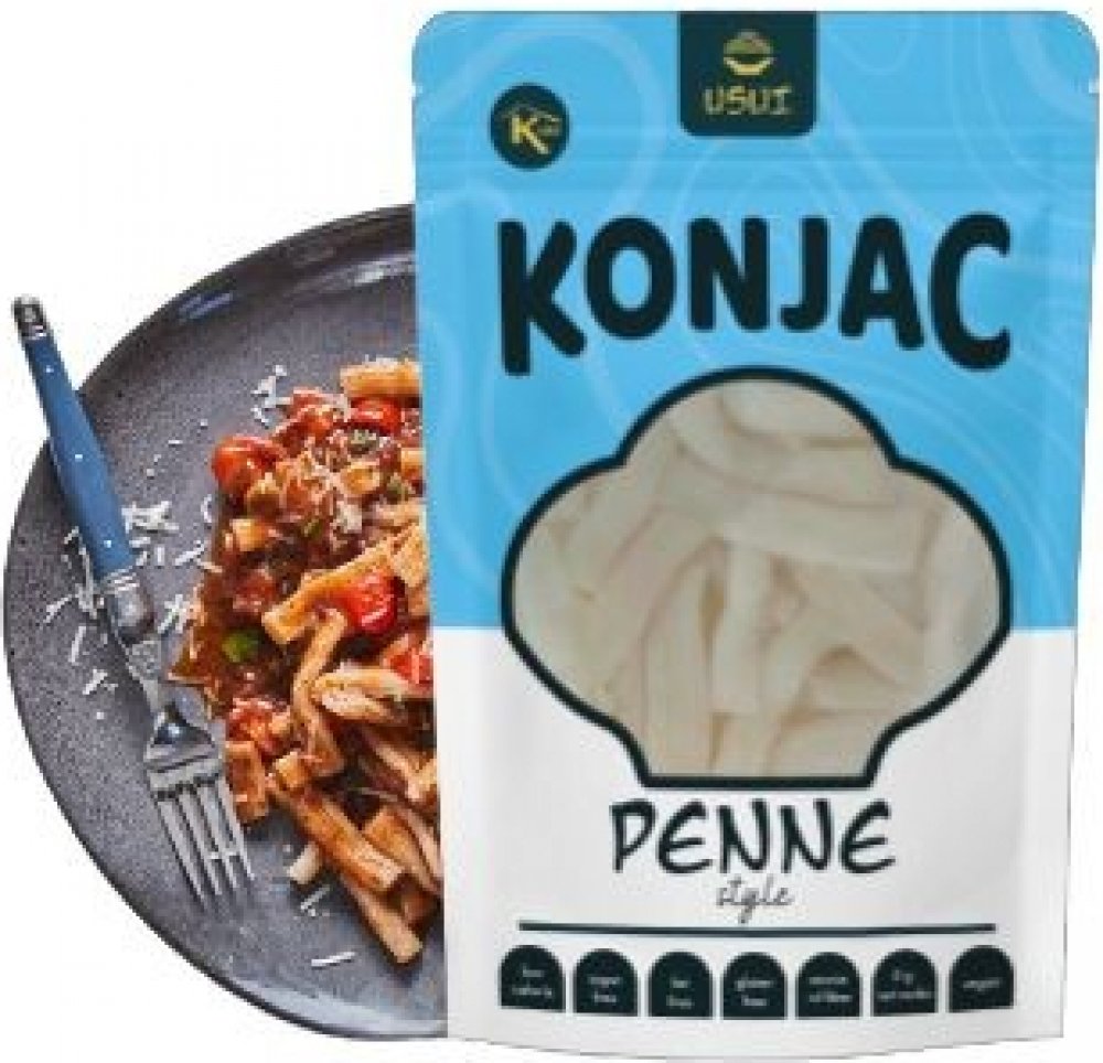USUI konjakové penne v nálevu jsou ideální pro ty, kteří chtějí udržovat svou váhu, nebo si jen dopřát lahodný a nízkokalorický pokrm. Obsažená vláknina glukomannan přispívá ke snížení hmotnosti* a k udržení normální hladiny cholesterolu v krvi**. Konjakové penne USUI mají minimální energetickou hodnotu a neobsahují cukry, sůl ani tuk. Díky svému složení jsou tedy ideální součástí redukčního jídel...