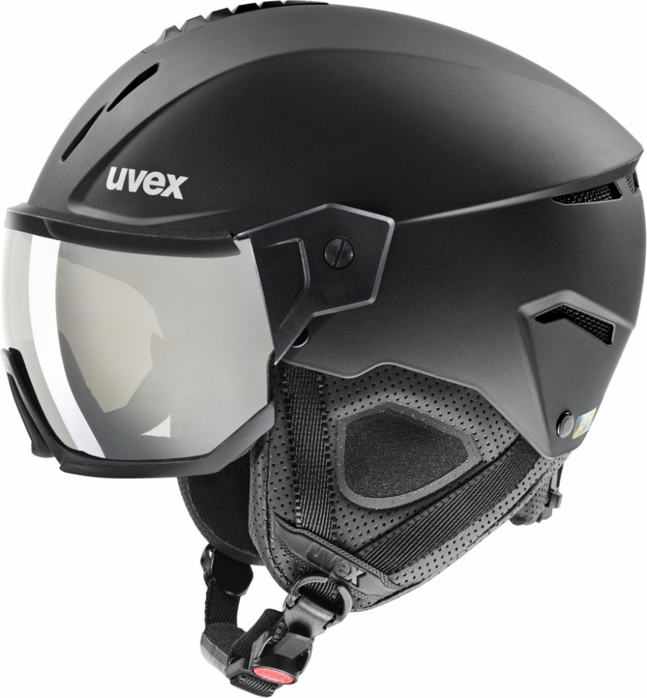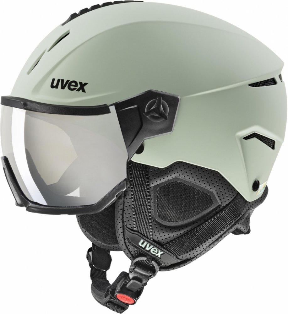 Uvex Instinct Visor je lyžařská helma s praktickým štítem (visor), díky kterému můžete zahodit starosti s brýlemi. Skla brýlí disponují technologií Supravision®, která nabízí extrémně odolný zorník proti poškrábání vnější strany se stálou úpravou proti zamlžení vnitřní strany. Helma disponuje konstrukcí skořepiny Hardshell, která se skládá z lehkého jádra absorbujícího nárazy a z ultra tenké, ale pevné vnější skořepiny. Helma je vybavena komfortním systémem Monomatic - upevnění na bradě pomocí jedné ruky. Bezpečné uchycení na hlavě je zajištěno díky systému upínání IAS pro nastavení vnitřního obvodu helmy, ta pak padne naprosto dokonale. Díky Fast Adapting System (FAS) lze popruhy snadno a plynule upravit přesně na míru podle tvaru Vaší tváře. Helma tak zůstane bezpečně na Vaší hlavě ve všech situacích a popruhy budou v pohodlné pozici. Integrované ventilační kanály garantují optimální průchod čerstvého vzduchu. Lze je uzavřít a zabránit tak proudění vzduchu helmou - nedochází tak k tzv. průvanovému efektu. Helma také disponuje výstelkou, která odvádí přebytečnou vlhkost pryč a udržuje hlavu v suchu. Díky technologii OTG lze nosit přes dioptrické brýle.