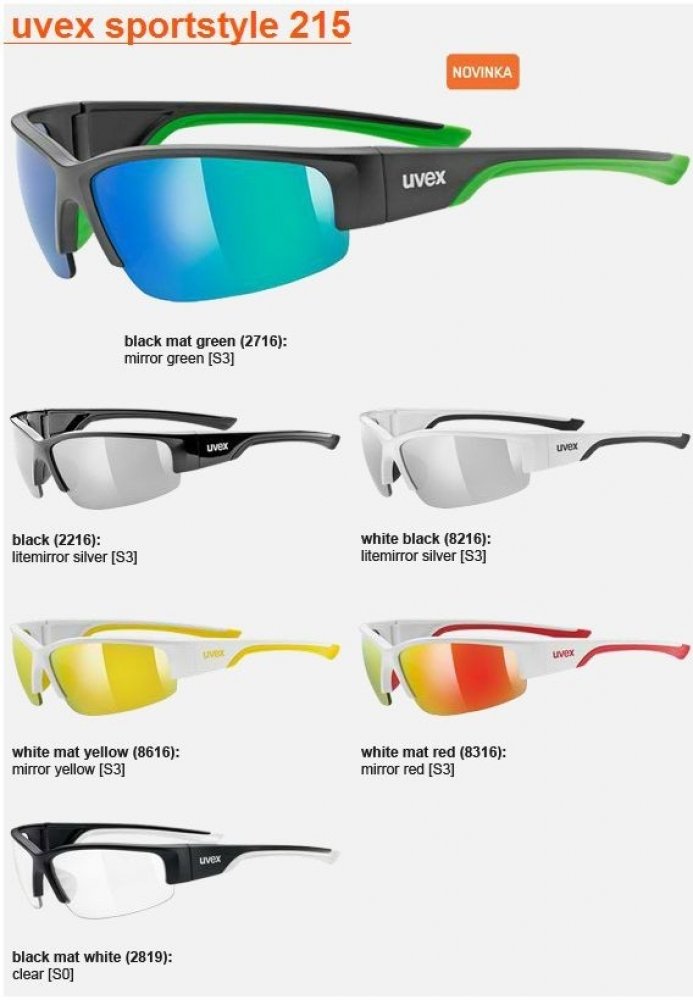 Multisportovní polorámové brýle uvex sportstyle 215 s tmavými zrcadlovými skly pro jakoukoliv sportovní aktivitu v slunečném počasí. Zrcadlová skla s kategorií s3 jsou vhodné do slunečného počasí a propouštějí světlo v rozsahu 8 % - 18 %. Brýle jsou velmi lehké a pohodlné díky měkkým nosníkům a ramínkům. Skla brýlí zajišťují 100 % ochranu před UVA, UVB a UVC zářením až do 400 nm vlnové délky.