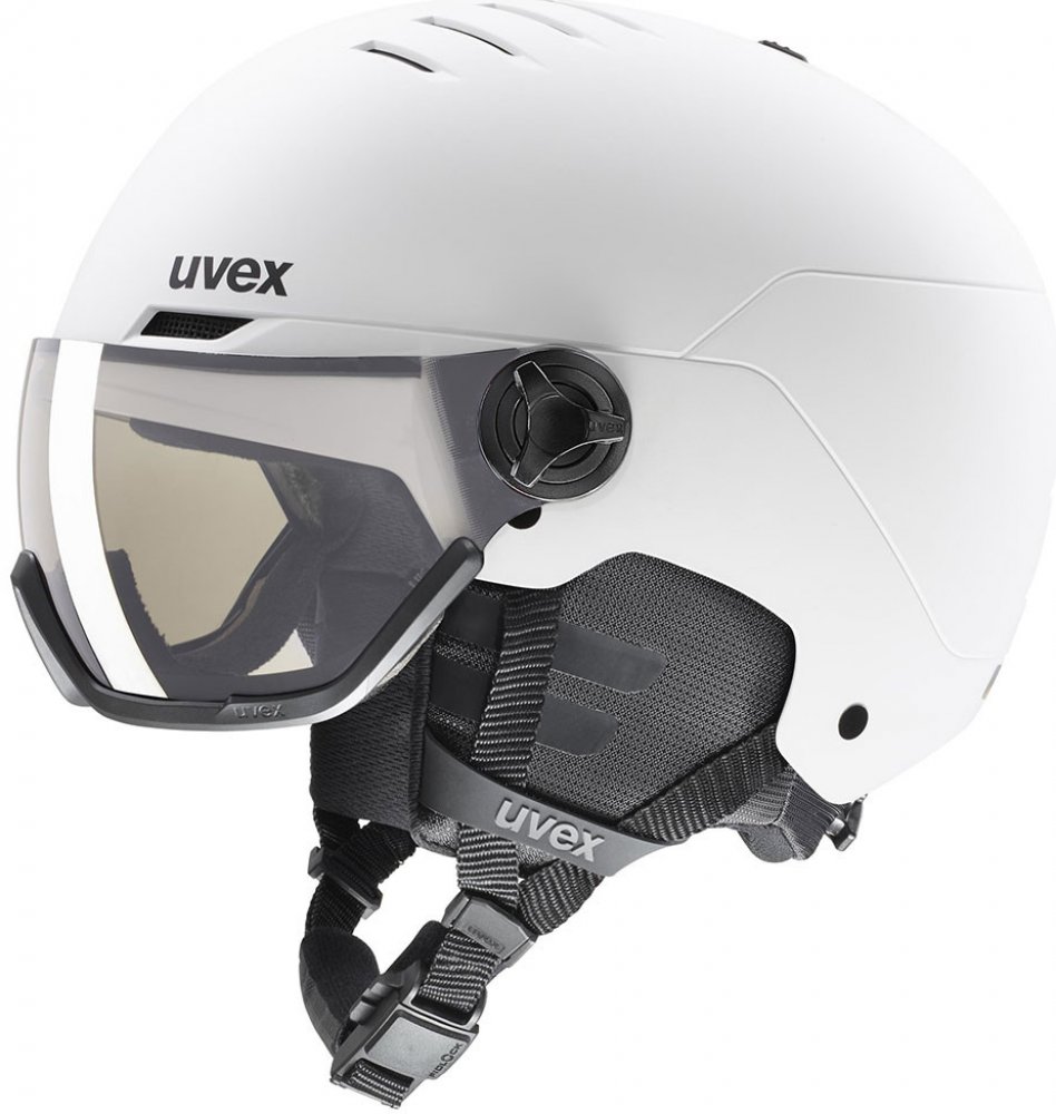 Lyžařská helma se štítem, která ví, co potřebujete. Uvex Wanted Visor PRO V je navržena pro maximální pohodlí, špičkovou ochranu a perfektní výhled za každého počasí. Díky variomatickému zorníku se přizpůsobí světelným podmínkám a zajistí dokonalý vizuální komfort – bez mlžení, bez kompromisů.Ideální volba pro všechny, kdo chtějí výkonnou helmu se štítem a elegantním designem.Materiál a vlastnostiHardshell konstrukce – kombinace lehkého jádra a pevné vnější skořepiny pro maximální ochranu při nárazuVariomatic® zorník – automaticky se přizpůsobí světelným podmínkám (S1–S3)Supravision® technologie – zajišťuje odolnost proti poškrábání zvenku a stálou ochranu proti zamlžení zevnitřIAS systém – přesné přizpůsobení vnitřního obvodu helmy jednou rukouFast Adapting System (FAS) – popruhy se automaticky přizpůsobí tvaru hlavyMonomatic – bezpečné zapínání pod bradou s možností ovládání v rukavicíchUzavíratelný ventilační systém – aktivní proudění vzduchu podle potřebyOTG technologie – vhodná i pro lyžaře s dioptrickými brýlemiZlepšená akustika – lepší slyšitelnost okolíZorník - Litemirror silver / variomatic® clearHmotnost: 650 g