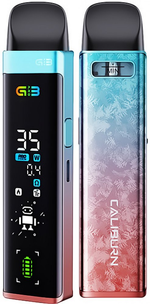 Futuristická POD e-cigareta UWELL CALIBURN G3 PRO přichází s revolučním displejem, který je masivní a pokrývá takřka celou přední část těla zařízení. Caliburn G3 Pro ukrývá baterii s kapacitou 1000 mAh, dovolí nastavení výkonu v rozmězí 5 - 35 W a disponuje technologií Pro-FOCS pro maximálně výrazné podání chuti.
