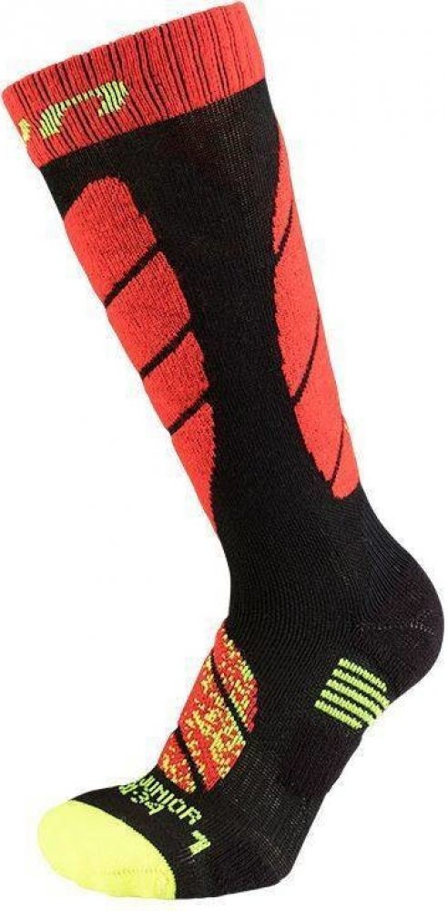 Dětské teplé ponožky na zimní sporty zajišťující funkční sofistikovaný komfort. Jsou vybaveny různými funkcemi na zlepšení držení, větrání a ochrany - od paty až po špičku, jak technologie COOL-AIR-FLOW, což je 3D struktura s mikrokanály na chlazení cirkulace vzduchu mezi přízí a pokožkou, bandáž cílové komprese - asymetrické, ergonomické bodové stlačení , ventilace a podpora, ANKLE GUARD - integrovaná ochrana kotníku na vnitřní straně nohy při stresujících dynamických činnostech, PRESHOCK SHIELD - absorbuje nárazy a chrání achilovku s 3D strukturou, ergologický FOOTBED - anatomická struktura pro atletické zátěže a pohybové profily specifické pro nohy, ZERO-STRANGLE CUFFS - anatomicky tvarované, pružné manžety pro spolehlivou podporu bez zařezávání, ANTI-IMPACTOR - čelní a tlumící konstrukce, která zajišťuje zároveň efektivní ventilaci nohy, princip PROXYGENU - podporuje okysličování svalů, optimalizuje cirkulaci vzduchu, COMPRESS IQ - inteligentní komprese (lehká nebo intenzivní) pro zvýšení přívodu kyslíku do svalů a GRIPDYNAMICKÁ KONCEPCE - inteligentní ochrana a větší přilnavost pro zvýšenou stabilitu nohy.