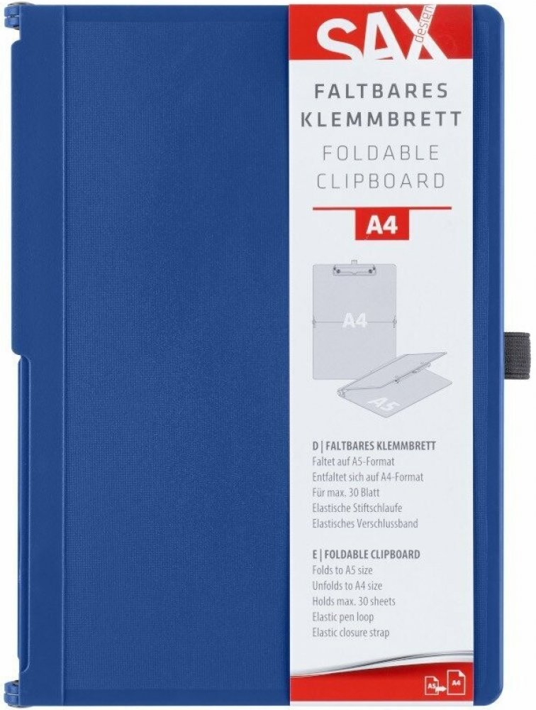 Uzavíratelné psací desky s klipem SAX A4 - modré