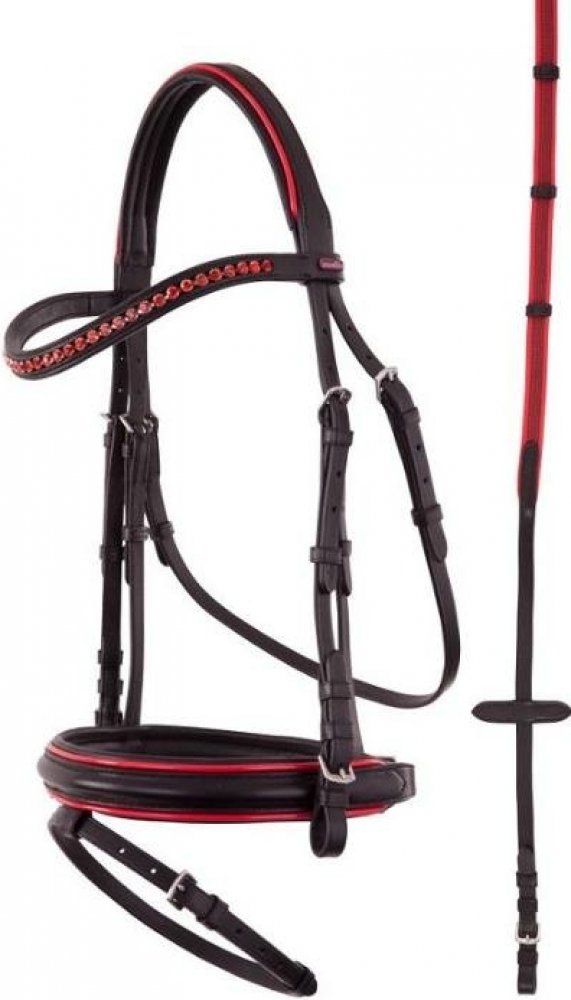 Uzdečka PREMIERE Nantes s anglickým nánosníkem black/red COB