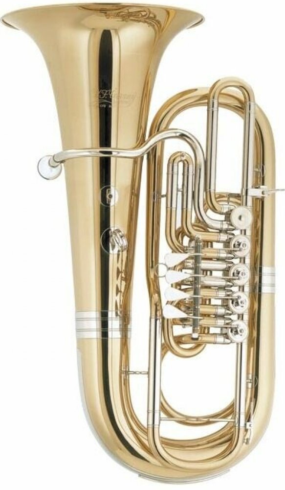 F tuba (ARION BABY), 4 ventily, vrtání 18.2mm, ozvučník 400mm, pakfongové vnitřní i vnější tahy, pakfongová pouzdra ventilů, převod Minibal, kompaktní model, lak, pouzdro