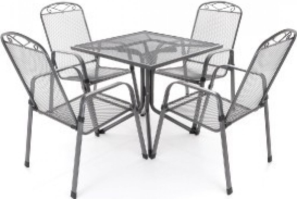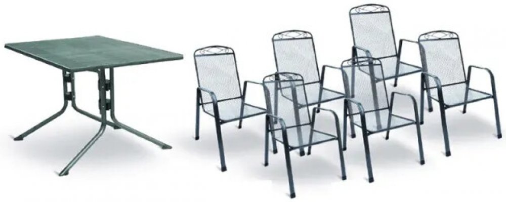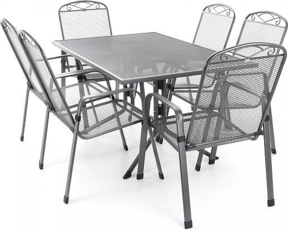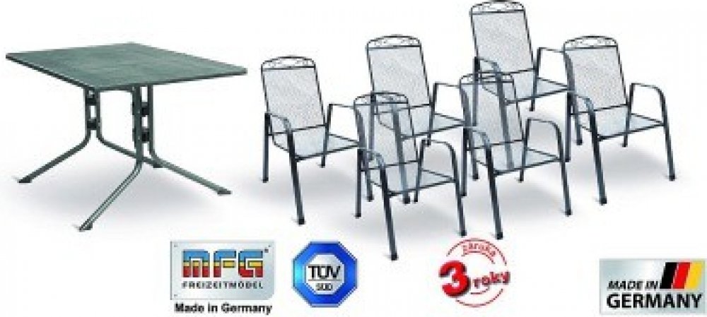 Jedná se o nábytek z tahokovu MFG, který je navržen speciálně pro venkovní prostředí. Sestava se skládá ze 4 kovových křesel ZINGST a 1 kovového stolu MEC-MESH 80. Ideální pro venkovní gastro použití v restauracích nebo terasách. Záruka 3 roky. Jedná se o nábytek z tahokovu MFG, který je navržen speciálně pro venkovní prostředí. Sestava se skládá ze 4 kovových křesel ZINGST / Rozměry: 95x73x57 cm, hmotnost: 6 kg/ a kovového stolu MEC-MESH 80 / Rozměry: 80x80x71 cm, hmotnost: 12 kg/. Křeslo má výplet s oky s vysokou pevností. Je stohovatelné. Křesla i stůl jsou opatřeny speciální 4-vrstvou povrchovou úpravou s NANO technologií pro venkovní použití ve vlhkém prostředí. Odolné vůči vodě, slunci a mrazu. Polyesterová vrstva s UV filtrem. Ideální pro venkovní gastro použití v restauracích nebo terasách. Test GS kvality. Stolová sestava MFG ZINGST 4 4 kovová křesel ZINGST 1 kovový stůl MEC-MESH 80
