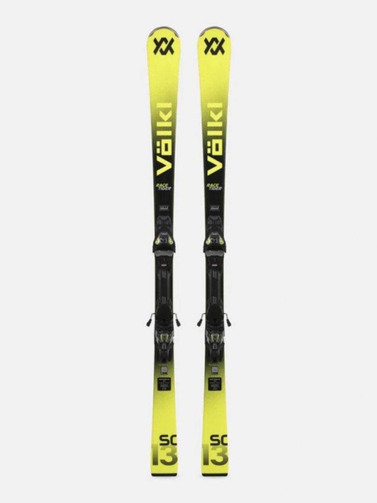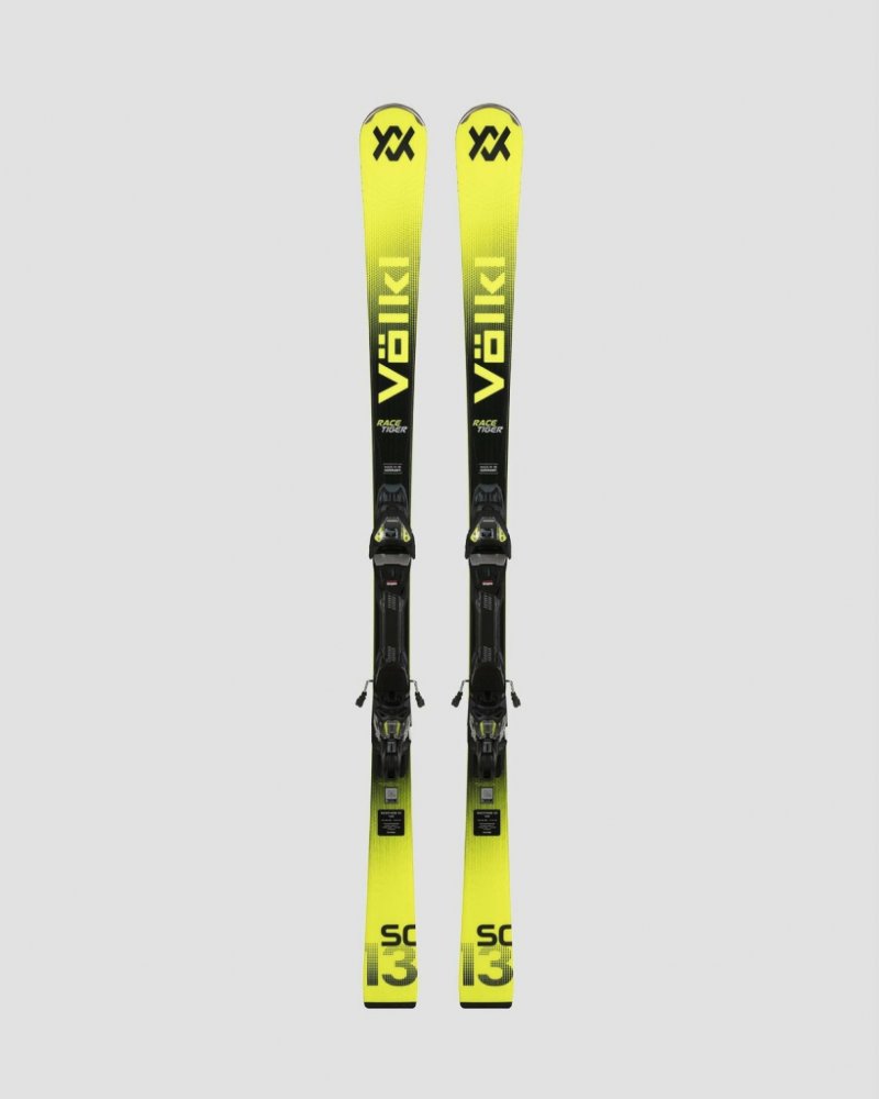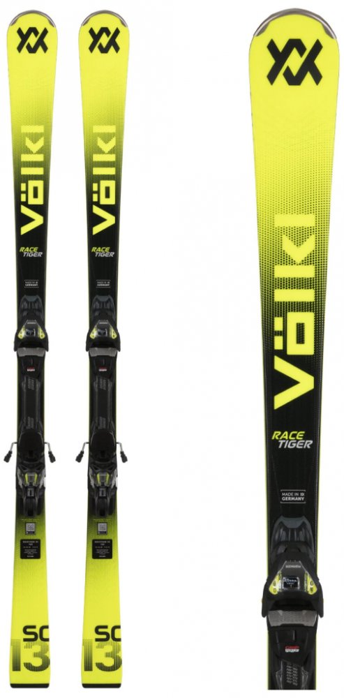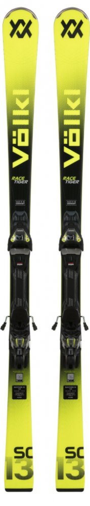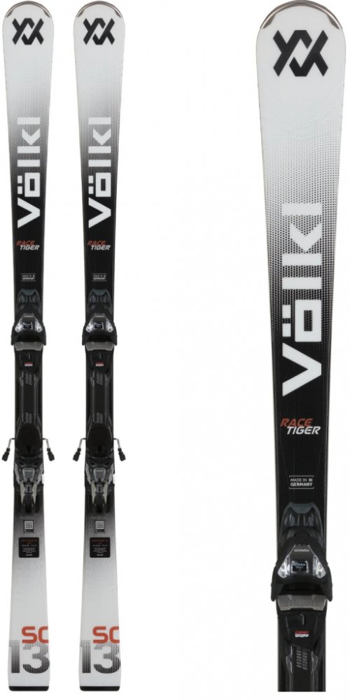 Odladěné slalomky Völkl Racetiger SC mají dřevěné jádro vyztužené titanalem a skelným vláknem ve 3D struktuře, disponují výztuhou špiček z karbonových vláken pro eliminaci nežádoucích vibrací a prohnutím tip rocker na špičce pro snazší zahájení oblouku.