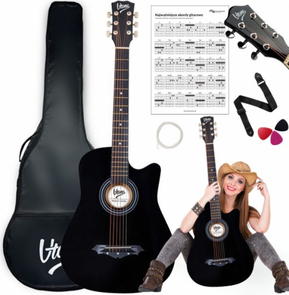 Akustická kytara V-TONE AG ONE BK 4/4 trsátka popruh náhradní struny pouzdro akordy