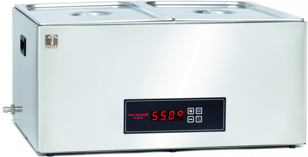 Přístroje CSC dodáváme ve 2 modifi kacích. Základní varianta CSC umožňuje přípravu pokrmu za předem nastavené teploty. Tato teplota se udržuje s přesností ± 0,2 °C. Provedení CSC-CT obsahuje všechny funkce standardního CSC a navíc má teplotní sondu, se kterou se provádí úprava pokrmu podle tzv. teploty jádra, což má význam hlavně při úpravě velkých porcí masa. Dále má toto provedení možnost přednastavit a zapamatovat si až 10 způsobů přípravy potravin.Počet komor: 1Obsah varné lázně: 58 lSonda pro vnitřní teplotu: neOdtok (výpustní kohout): ano