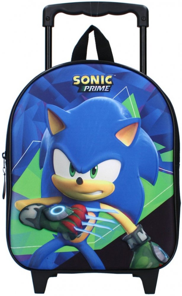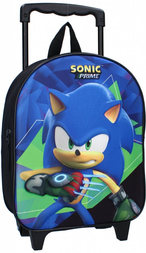 Cestovní kufřík na kolečkách - trolley - Ježek Sonic. Tento dětský kufr má jednu hlavní komoru o velikosti 32 x 26 x 11 cm se zapínáním na zip a přední částí s plastickým obrázkem superrychlého ježka Soníka. Dále je vybaven výsuvným držadlem s plastovým madlem, textilním uchem na zavěšení a samozřejmě kolečky a předními nožkami. Navíc jsou na zadní straně i nastavitelné polstrované popruhy na zád...