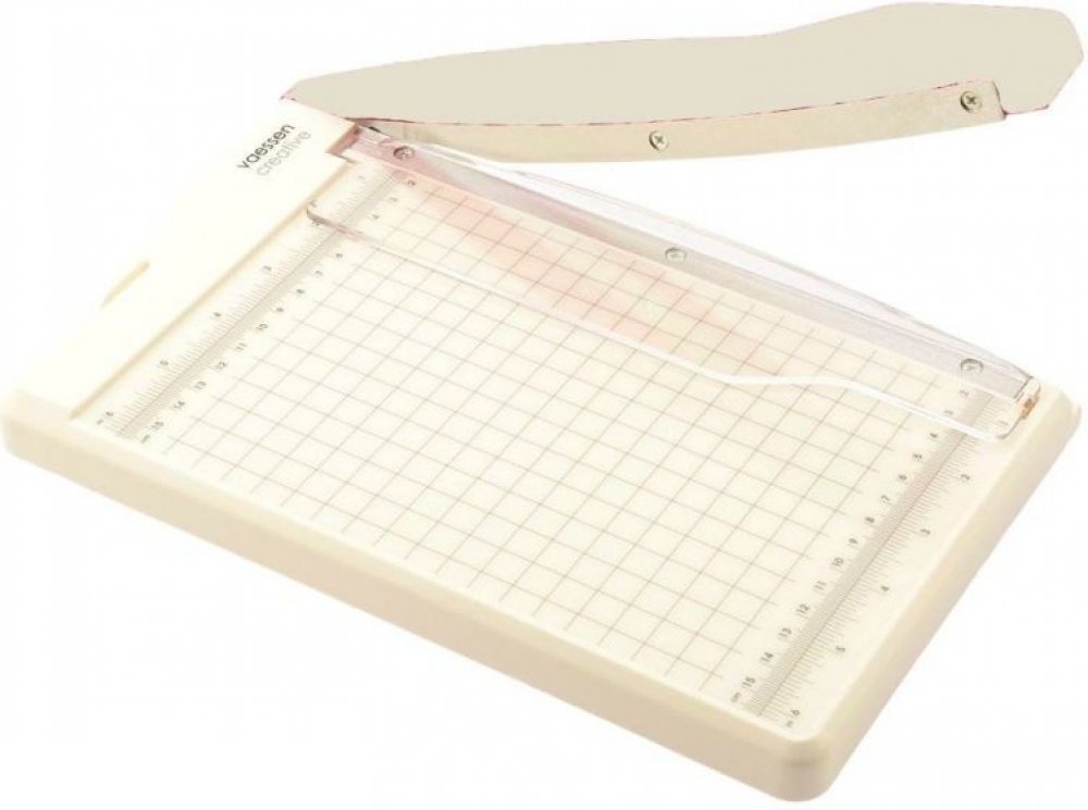 Páková řezačka papíru Vaessen creative umožňuje řezání papíru A5 na výšku nebo A4 naležato. Délka řezu 22cm. Linie pro přesné řezy s vyznačením metrických i palcových rozměrů. Celková šířka pracovní plochy řezačky je 15,7cm. Možnost řezu až 7 papírů najednou (80g/m2). Má závěsný otvor pro snadné skladování. Široký plastový kryt umožňuje přidržet papír ve správné poloze. Varování: Nevhodné pro děti do 3 let. Obsahuje malé časti a ostré hrany. Nebezpečí udušení a úrazu.