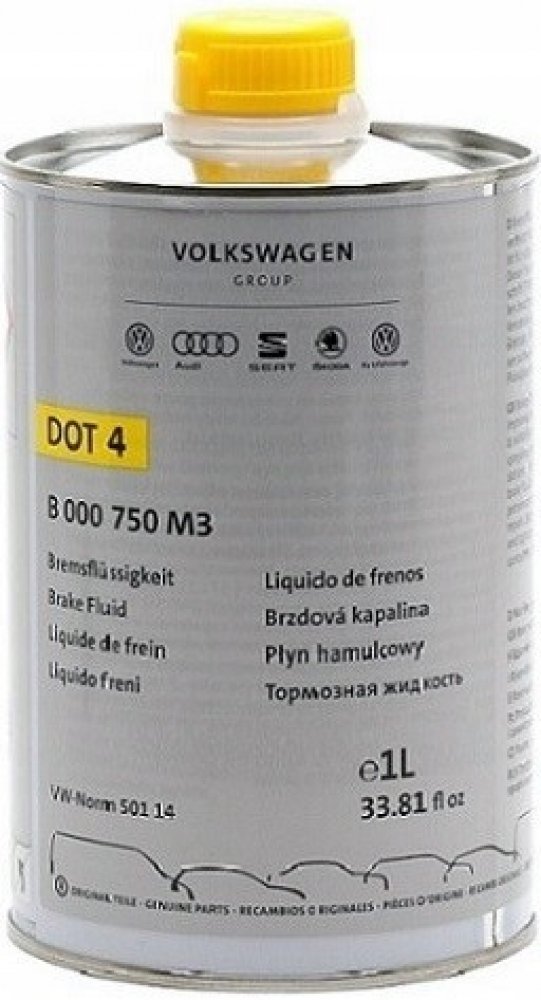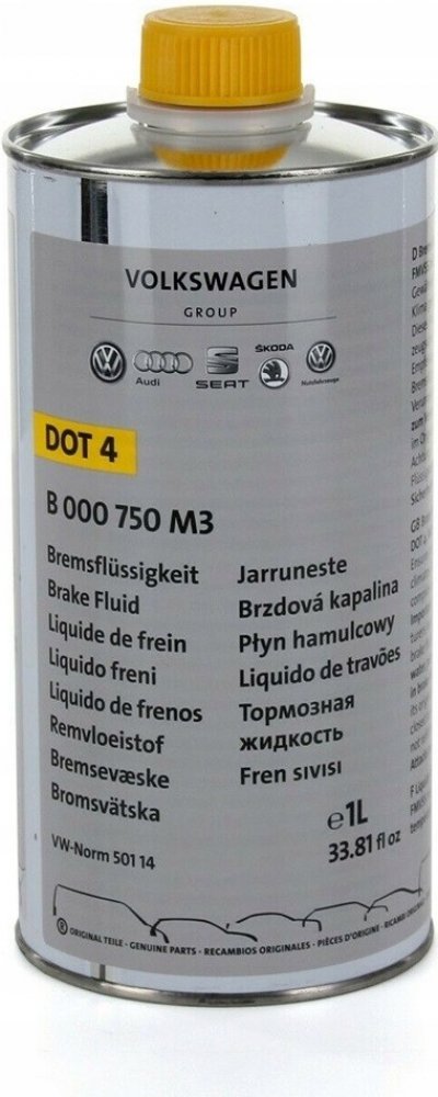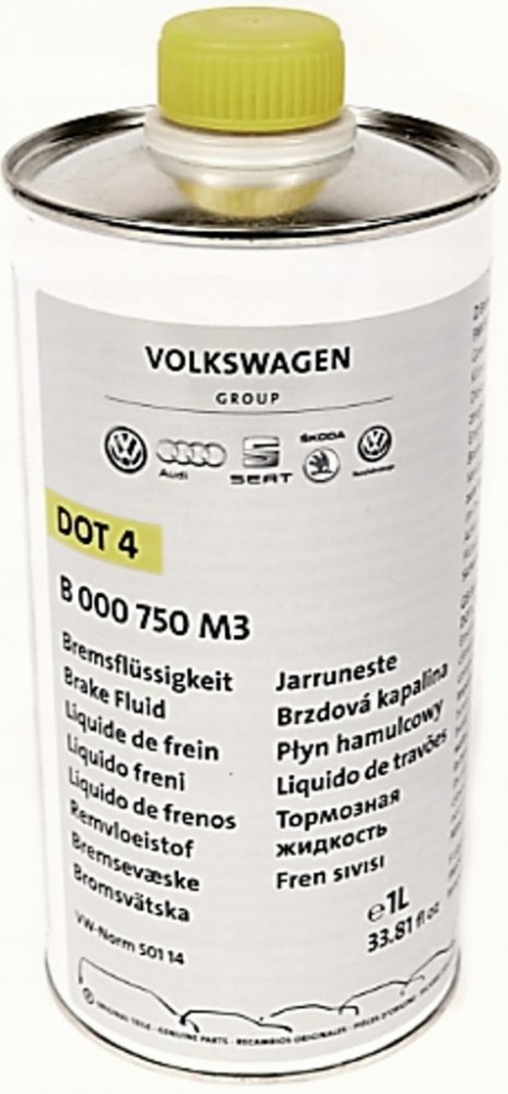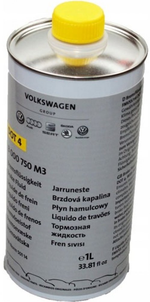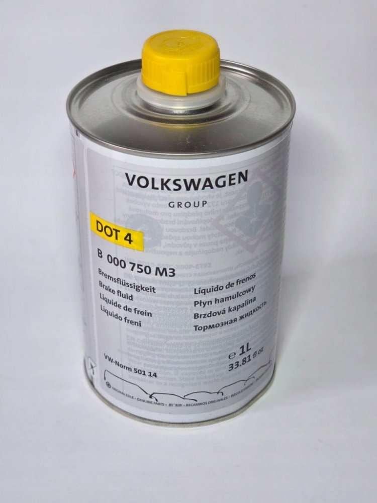 - Obal – plechovka 1L (podle doporučení VW by brzdová kapalina kvůli ochraně před procesem adheze neměla být prodávána v plastových obalech).