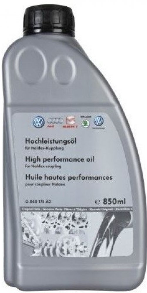 Vysokoteplotní olej pro spojku Haldex, určeno pro vozidla s pohonem 4x4, balení 850ml. Olej do haldex spojky originál VAG VW 850ml G060175A2 Originální díl VAG pro Audi, Seat, Škoda, VW. Mazivo a přípravek ke snížení tření, vysokoteplotní olej pro Haldex spojku. Balení 850 ml Specifikace G 060 175 A, TL 521 75-Y.