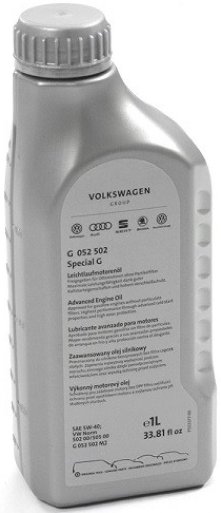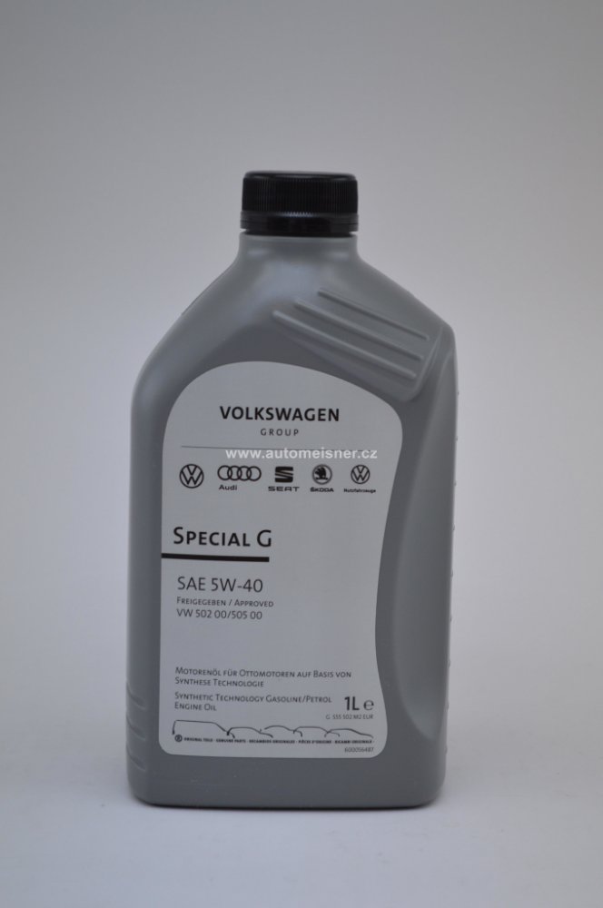 Originální motorový olej s viskozitou 5W-40 určený pro koncernové vozy VW, Audi, Škoda a Seat se specifikací VW 502 00 / 505 00.Vhodný pro výměnný interval 15 000km /1 rok.Lze použít pro benzínové i naftové motory.