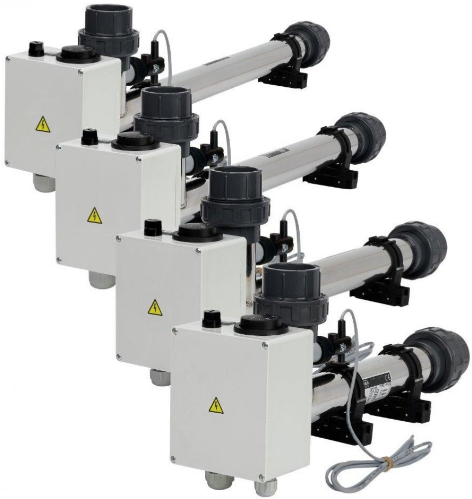 Elektrické průtokové ohřívače jsou určeny k ohřevu vody v bazénech a vířivých vanách, činnost spočívá v ohřevu protékající vody tělesem topení, teplota ohřívané vody je nastavena regulačním termostatem. Topné těleso je spínáno stykačem, který je ovládán výše uvedeným termostatem, bezpečnostním indikátorem průtoku. Z tohoto důvodu je k topení nutná tzv. velká automatika - 24 hodinový programátor filtrace, proudový chránič (ochrana před nebezpečným dotykovým napětím), tepelná ochrana motoru, stykač a spínač topení.