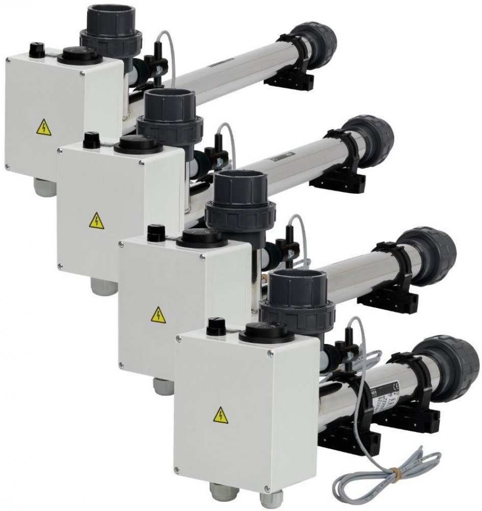 Elektrické průtokové ohřívače jsou určeny k ohřevu vody v bazénech a vířivých vanách, činnost spočívá v ohřevu protékající vody tělesem topení, teplota ohřívané vody je nastavena regulačním termostatem. Topné těleso je spínáno stykačem, který je ovládán výše uvedeným termostatem, bezpečnostním indikátorem průtoku. Z tohoto důvodu je k topení nutná tzv. velká automatika - 24 hodinový programátor filtrace, proudový chránič (ochrana před nebezpečným dotykovým napětím), tepelná ochrana motoru, stykač a spínač topení. Celé topné zařízení je vyrobeno z nerezového materiálu titanu(pro slanou vodu) nebo plastu.