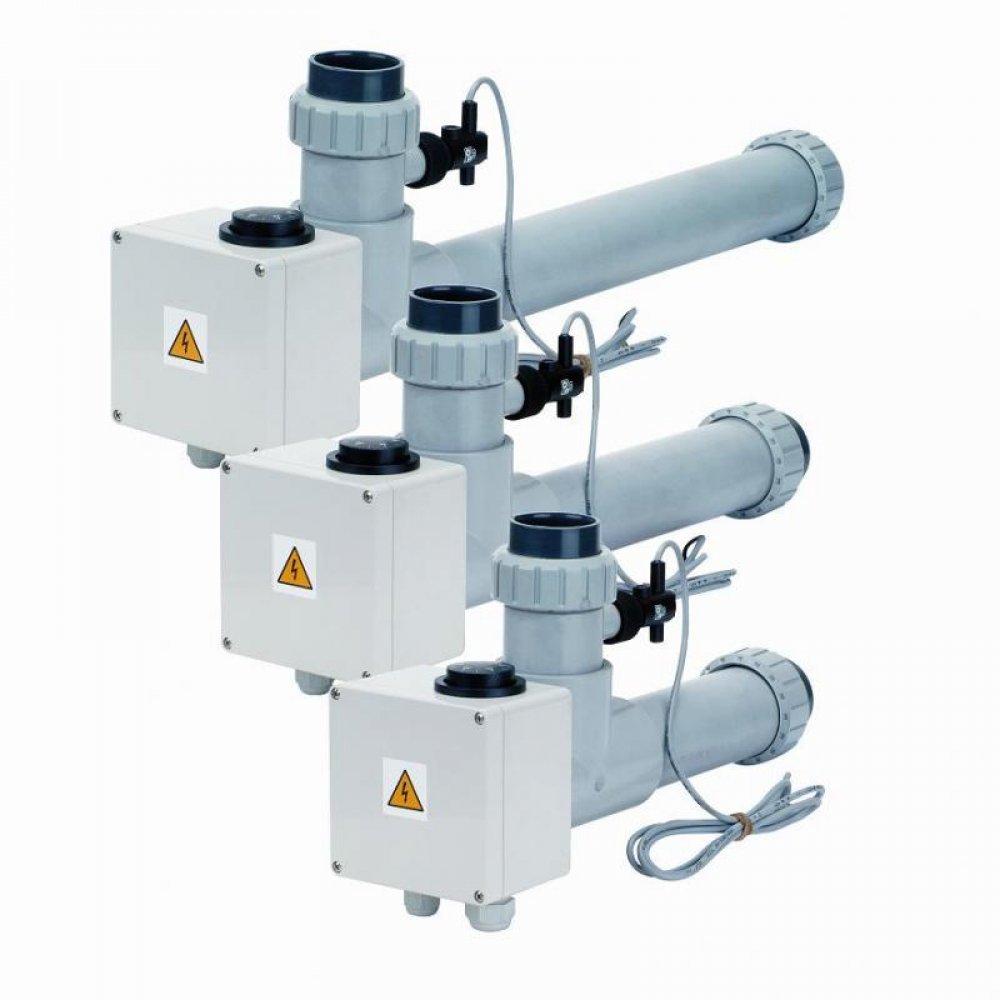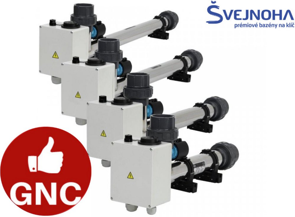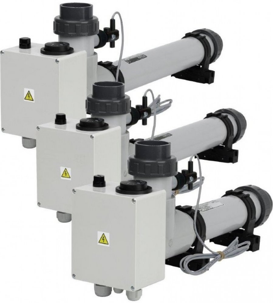 Plášť ohřevu je vyrobený z chemicky odolného plastu. Topná spirála vyrobena z TITANU. Ohřev je vhodný pro všechny úpravy bazénové vody, zejména pro slanou vodu. Díky vestavěnému termostatu a průtokové klapce nevyžaduje provoz ohřevu žádnou obsluhu. Ohřev neobsahuje silovou část - jištění, proudový chránič, stykač. Pokud již vlastníte bazéno...