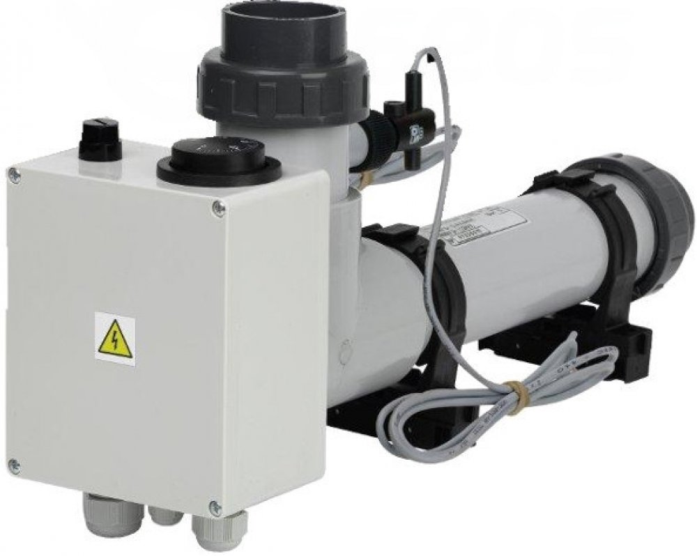 Plášť ohřevu je vyrobený z chemicky odolného plastu. Topná spirála vyrobena z TITANU. Ohřev je vhodný pro všechny úpravy bazénové vody, zejména pro slanou vodu. Díky vestavěnému termostatu a průtokové klapce nevyžaduje provoz ohřevu žádnou obsluhu. Ohřev neobsahuje silovou část - jištění, proudový chránič, stykač. Pokud již vlastníte bazénový rozvaděč, pak lze tyto prvky dle potřeby zabudovat do něj. Pokud rozvaděč nemáte, pak doporučujeme zakoupit řídící automatiku pro filtraci a ohřev bazénu.