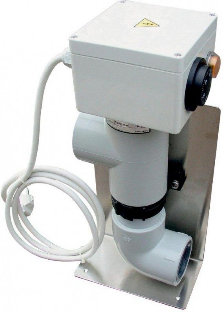 - EOVnTi, tento průtokový ohřívač je určen pro ohřev vody v nadzemních bazénech. Vlastní ohřívač je uchycen k nerezovému stojanu, který po ukotvení zajišťuje stabilní polohu ohřívače. Tělo ohřívače je stejně jako u typu EOVTi, z plastu odolávajícímu vysoké teplotě a topná patrona je z TITANU. Pro regulaci teploty slouží termostat do 40°C, dále je zařízení jištěno tepelnou pojistkou. Ohřívač je vybaven flexo šňůrou pro napojení do zásuvky 230 V za proudový chránič. Napojení na vodní okruh hadicovými trny 38 mm, popřípadě závitem 1,5" in. Každý ohřívač je testován na těsnost.