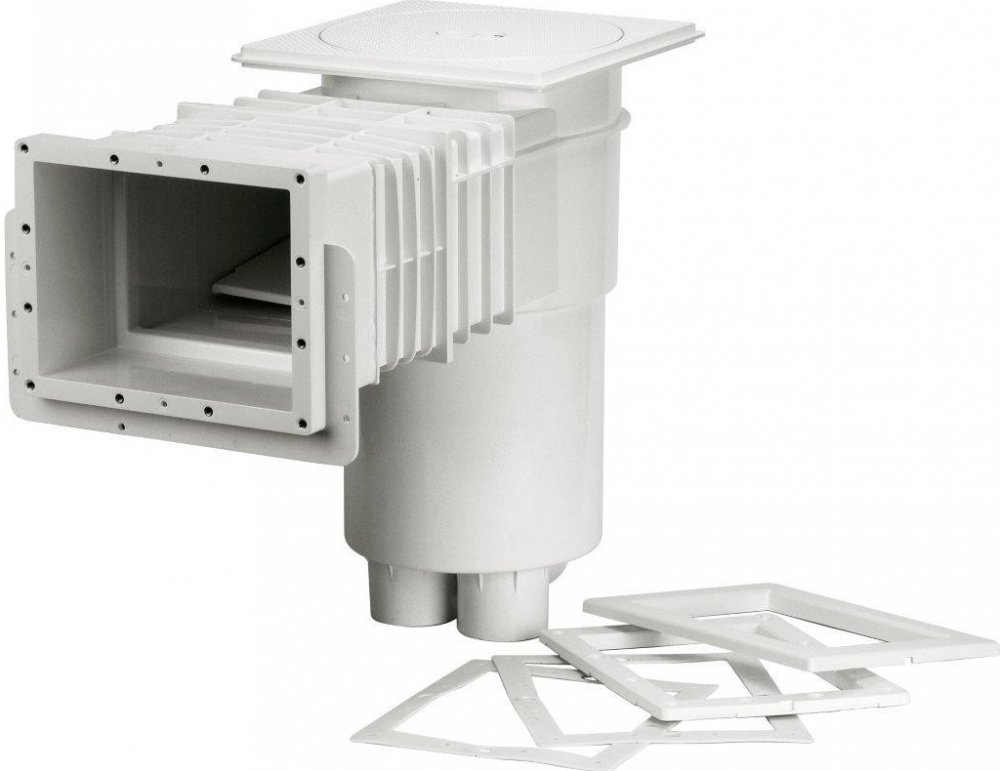 Skimmer VA, 215x160, pro fólie, s mosaznými zástřiky Skimmery VA jsou vyrobeny z bílého ABS, odolného proti UV záření. Výhodou jsou mosazné zástřiky M6 pro lepší dotažení příruby. U některých typů skimmerů je prodloužená délka hrdla pro bazény s bazénovým lemem. Vakuový kotouč je součástí. Výšku je možno prodloužit vertikálním prodloužením.