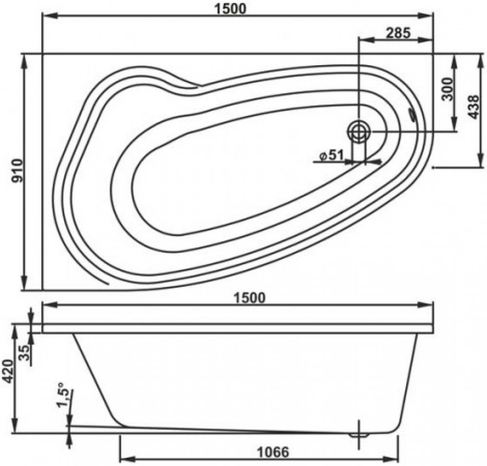 Vagnerplast akrylátové do levého rohu 21 kg bílé 150 cm 42 cm 164 l 90 cm