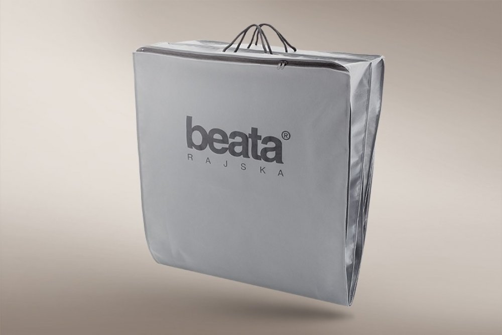 Látka vaku je netkaná textílie v rozměru 140x60x16 cm (vhodný na kratší bundy, saka, pánské obleky). Barva vaku je světle šedá s rukopisem nejuznávanější modní návrhářky Beaty Rajské. Vyrábí česká firma Rolsit - výrobce obalů a nákupních tašek s potiskem: www.rolsit.cz