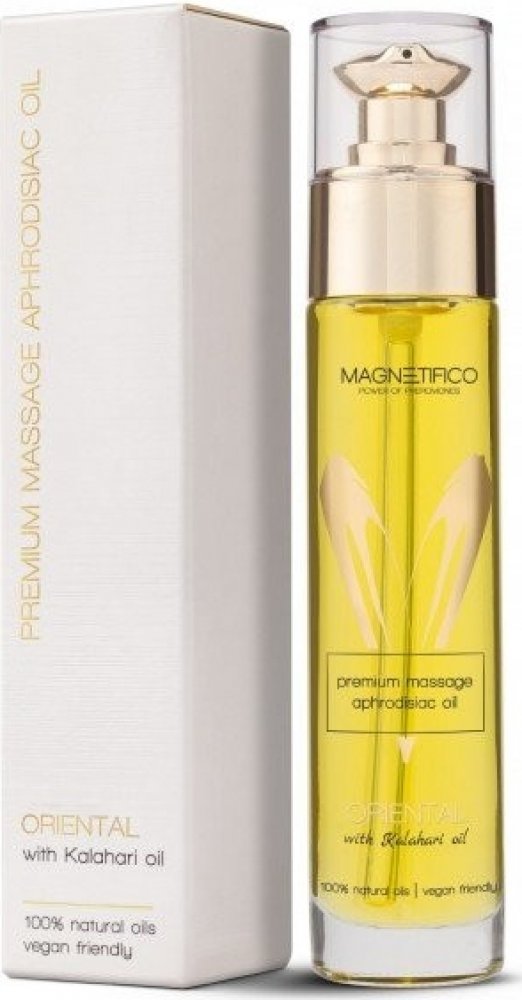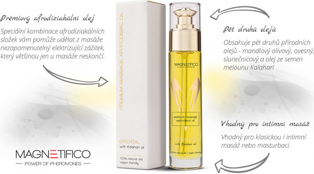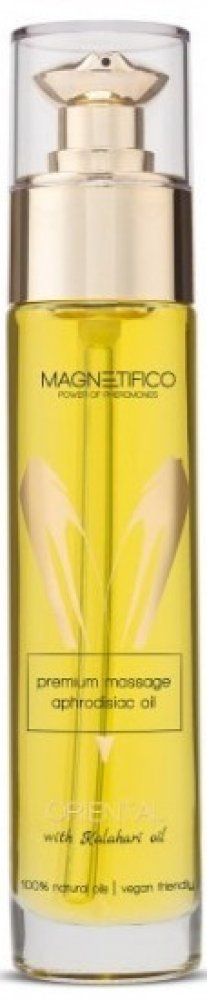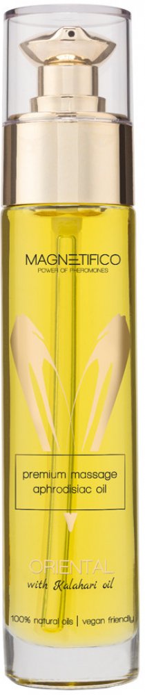 Masážní olej z řady MAGNETIFICO - power of pheromones s pěti druhy přírodních olejů, vhodný pro klasickou i intimní masáž. Vůně orientální.