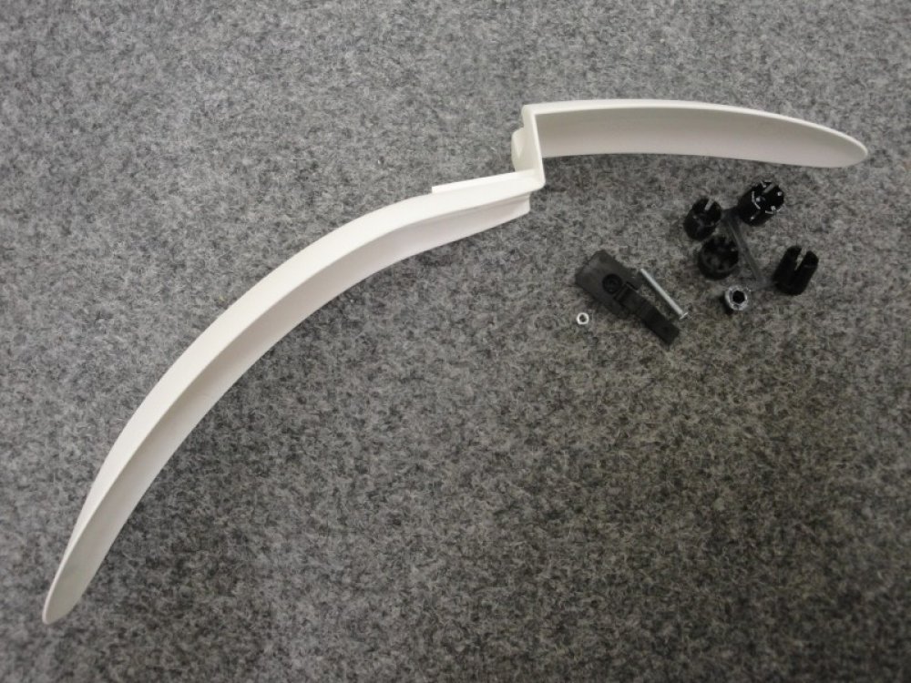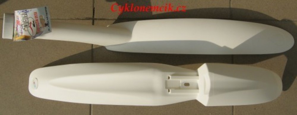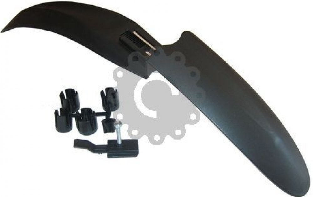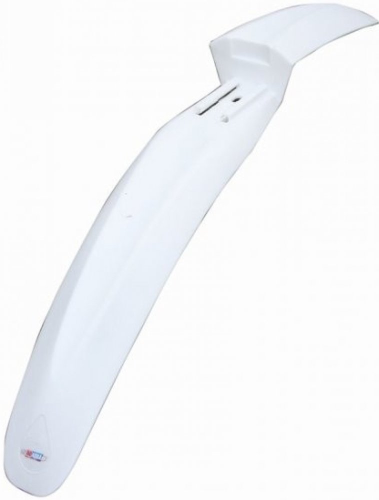 Přední blatník s úchytem do vidlice (včetně tapered). Určen pro kola MTB 24“-28“ Rychlá demontáž páčkou na úchytu. Rozměry: 600x80 mm Materiál: PP Hmotnost blatníku: 155 g včetně úchytu