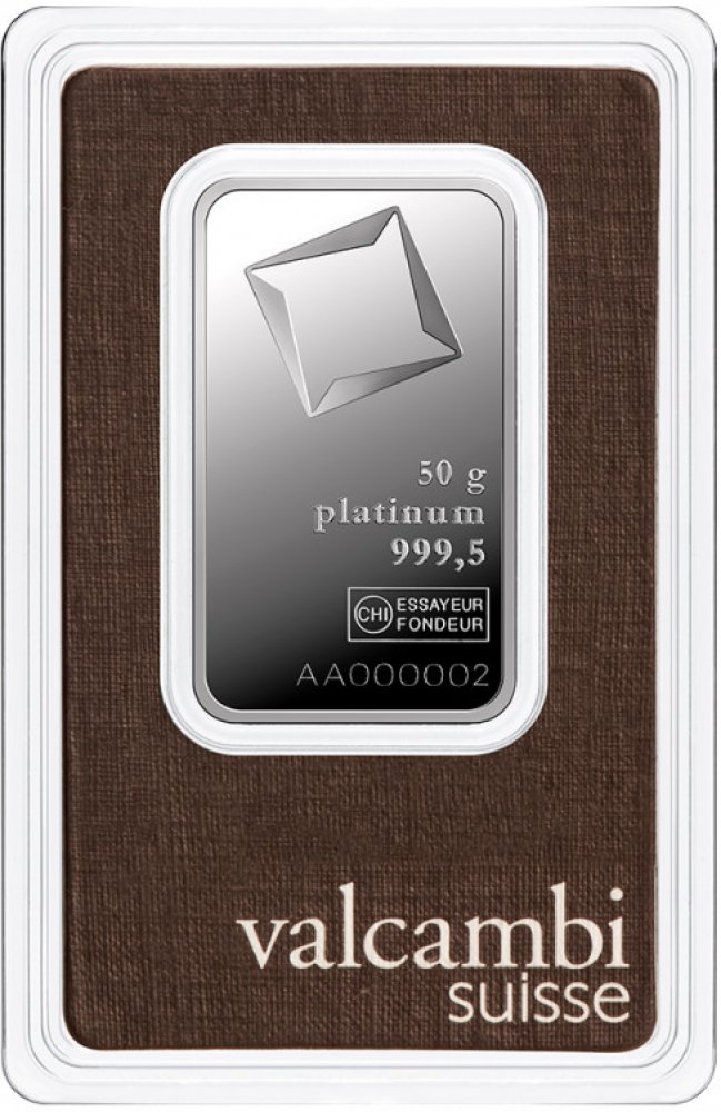 Švýcarské slitky z 999,5 čisté platiny, certifikované švýcarskou firmou Valcambi SA, odpovídají londýnskému standardu Good Delivery (LPPM) a jsou proto bez problémů akceptovány na všech trzích. Dokladem autenticity je logo dodavatele - rafinéra, ryzost a váha vyraženy na svrchní straně slitku.